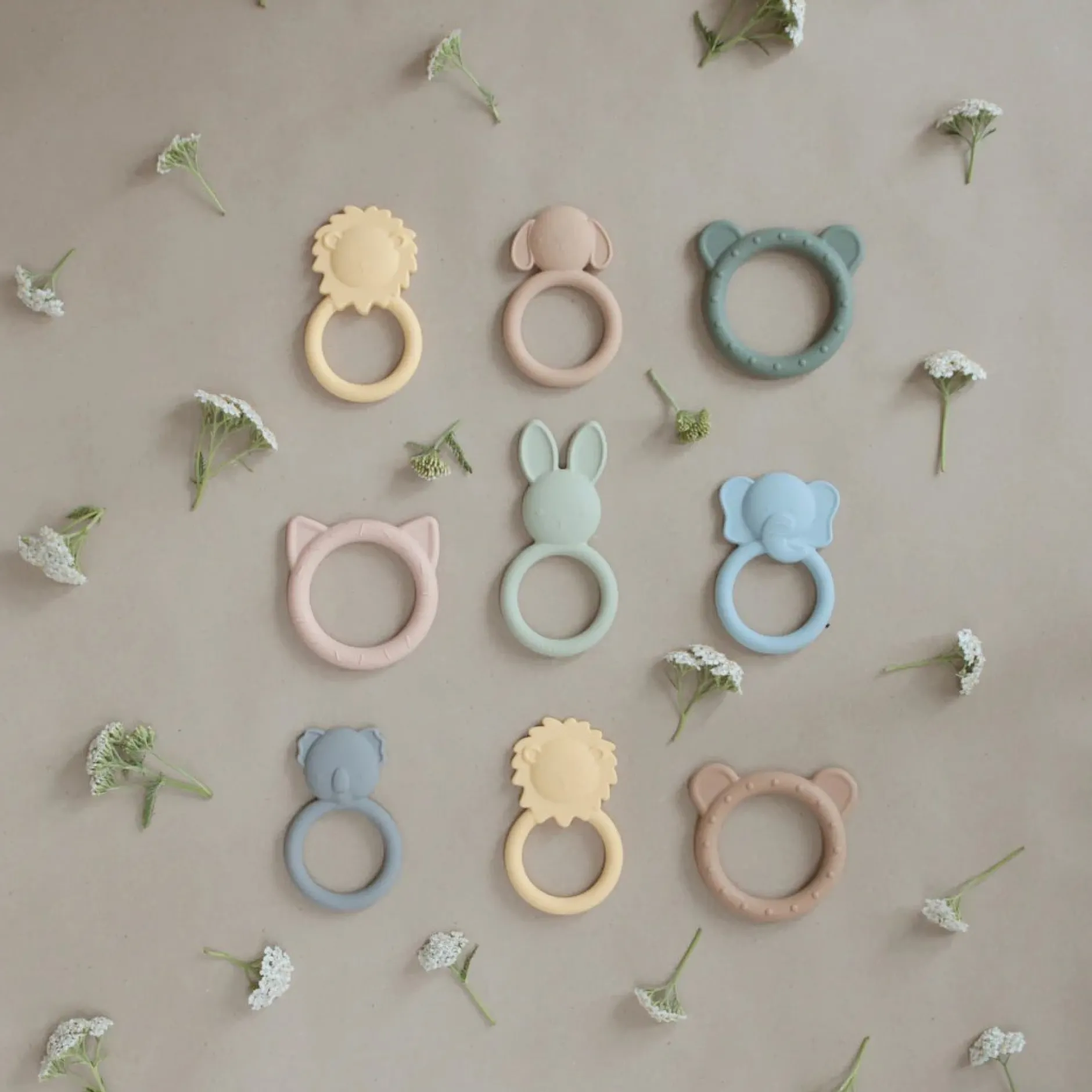 Aidez à apaiser les gencives irritées de votre bébé avec notre gamme d’anneaux de dentition. Fabriqués à partir de silicone 100% non toxique de qualité alimentaire et conçus pour être faciles à saisir par de petits doigts, nos jouets de dentition sont sans danger pour votre bébé. Leurs couleurs sophistiquées et leur design ludique en font un ajout élégant à votre maison.