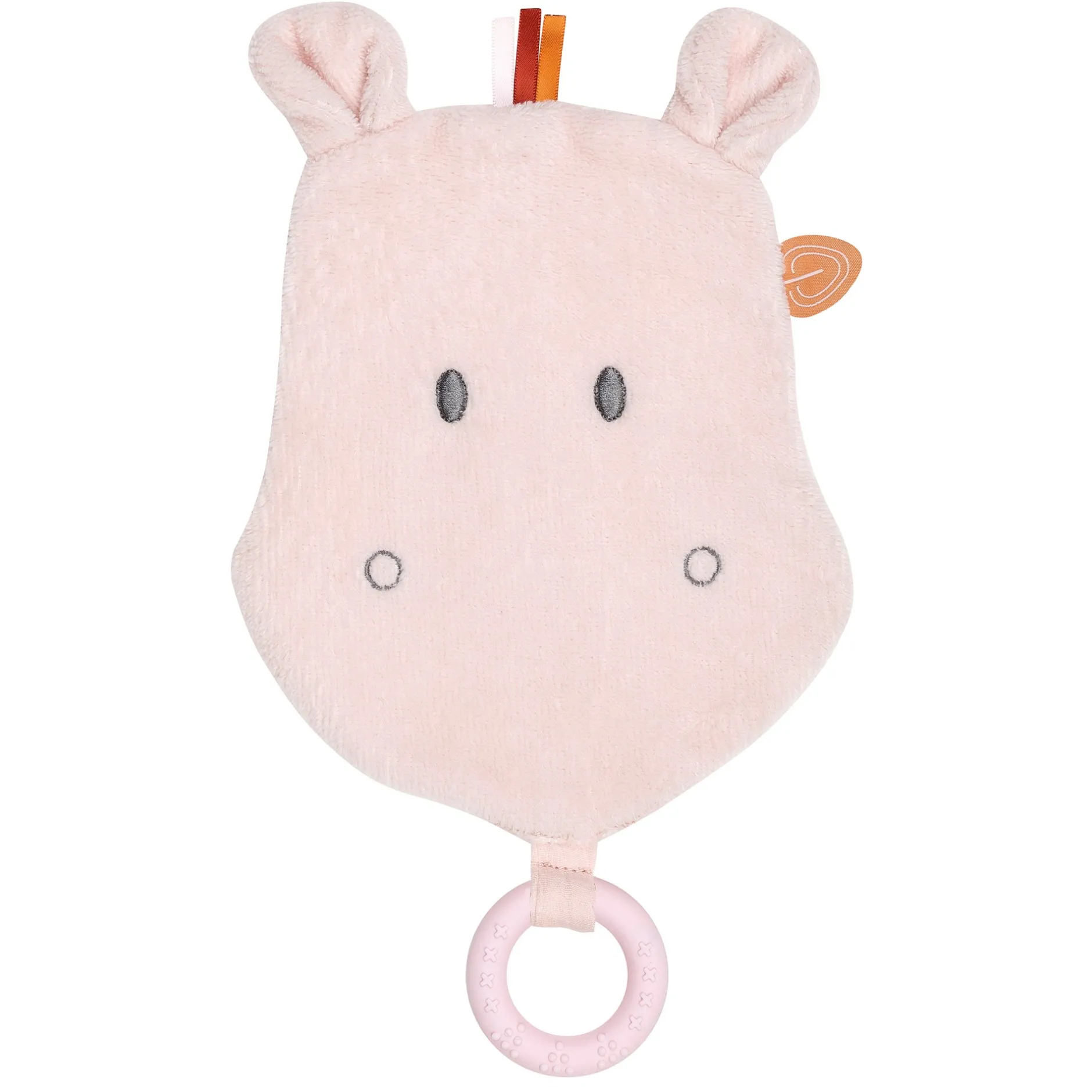 Le doudou inclus dans le set peut être attaché et retiré de l’anneau de dentition à volonté grâce à une petite fente.