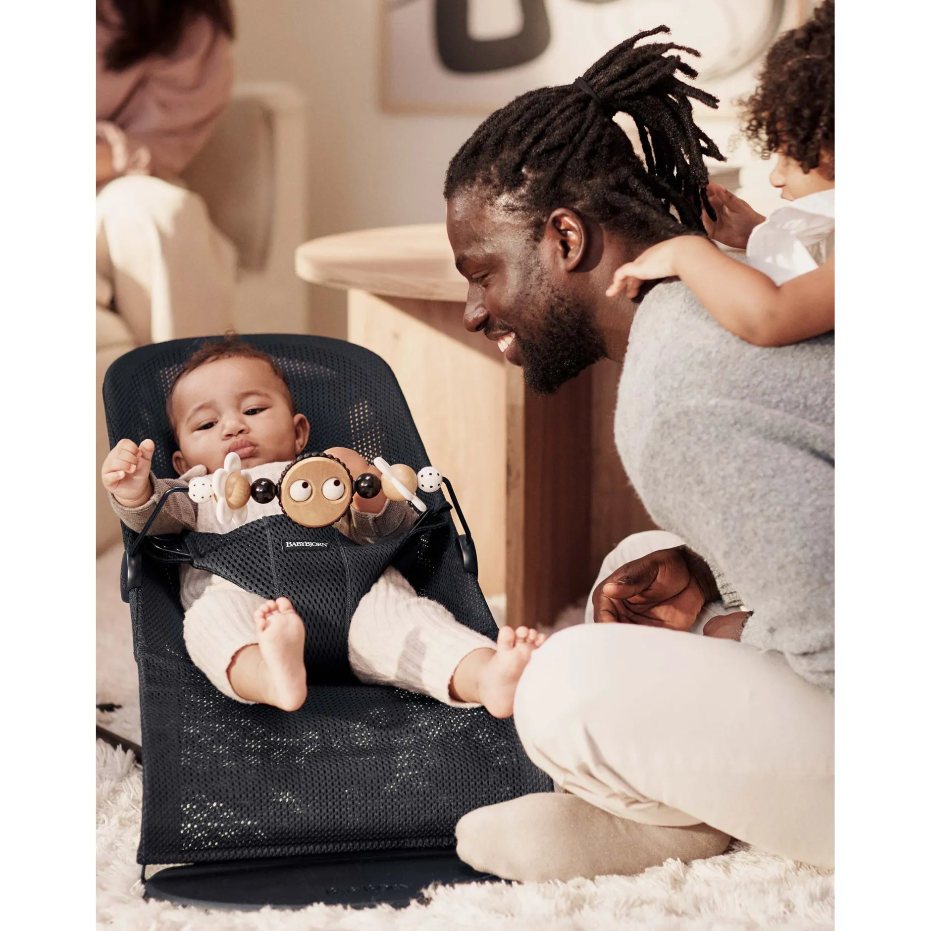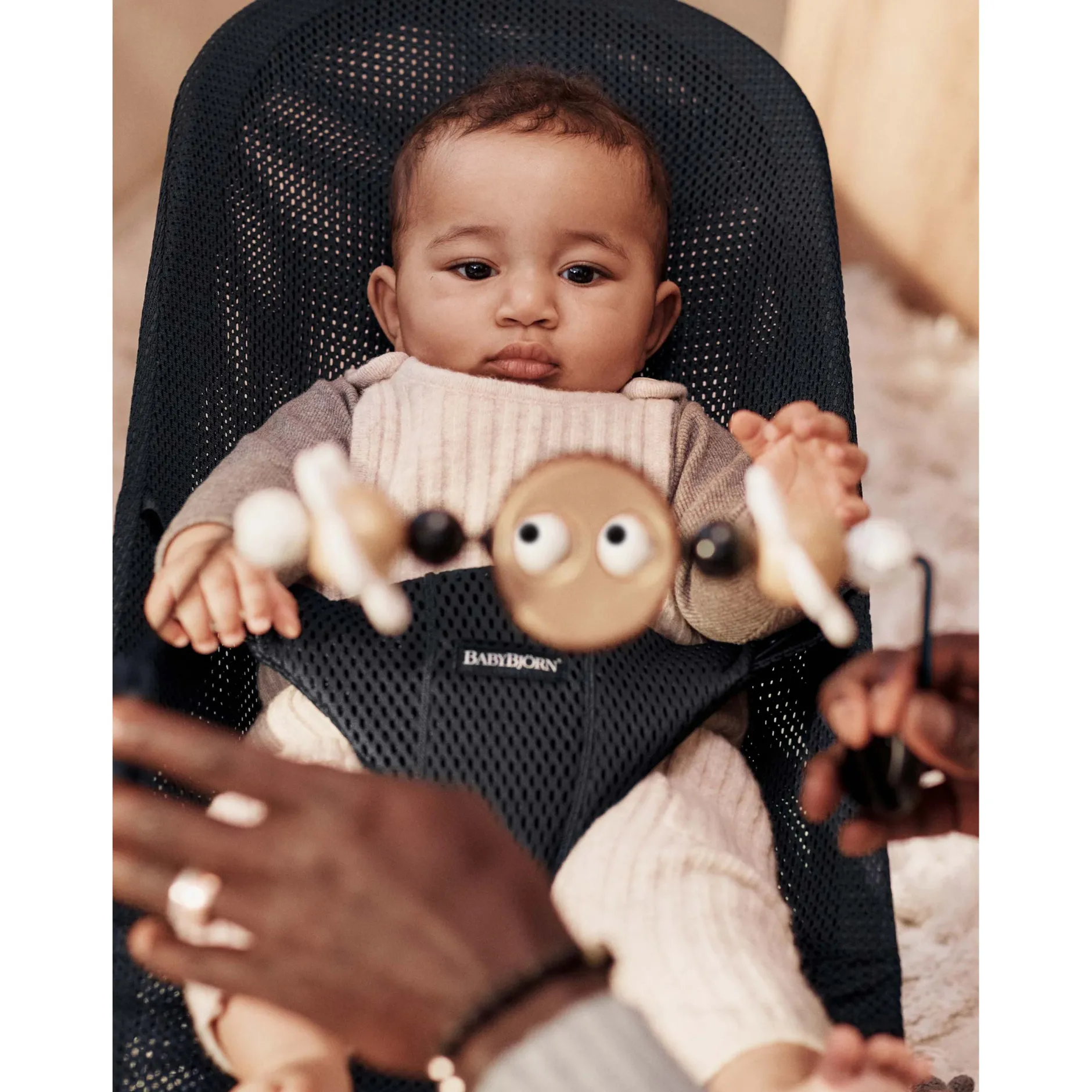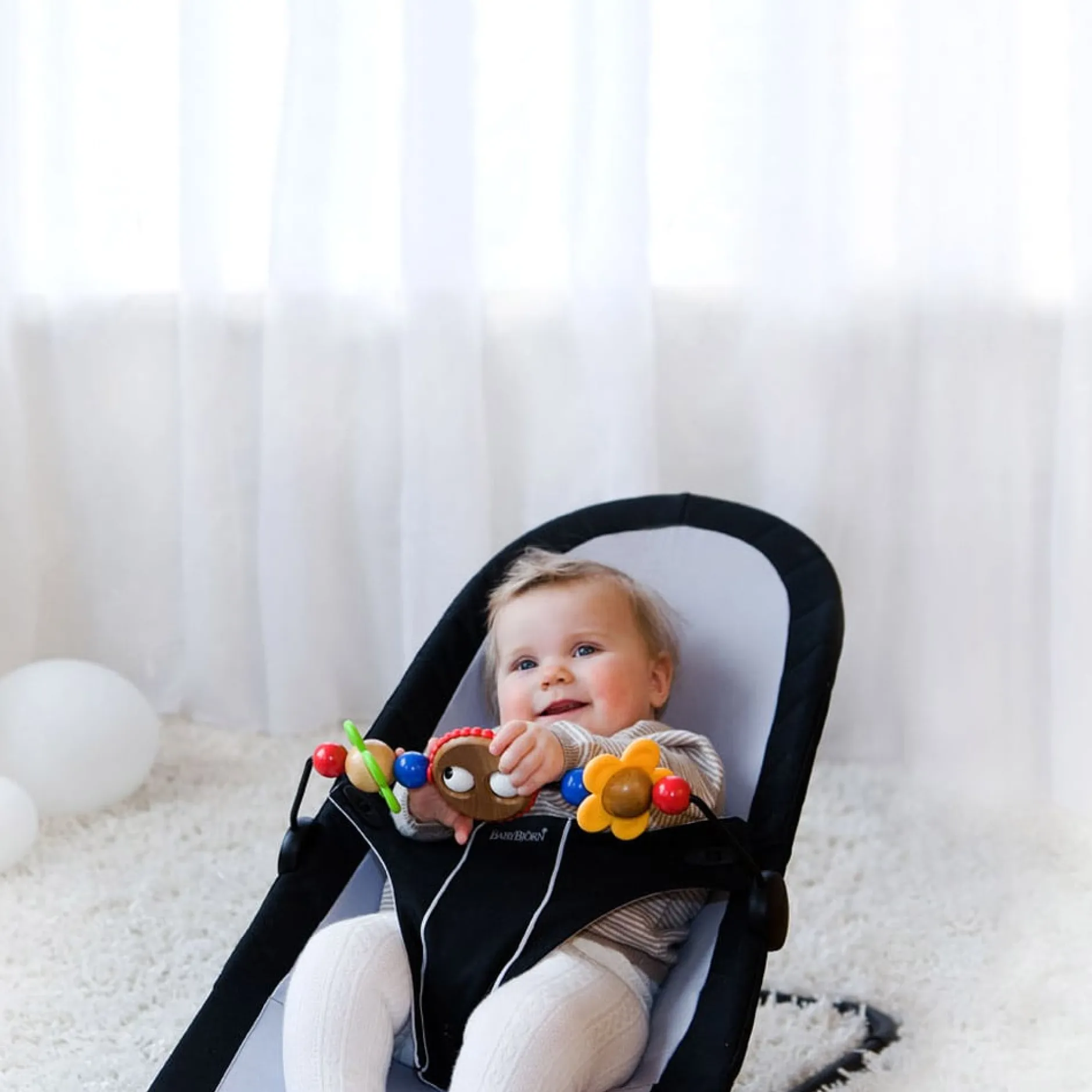 Le jouet en bois pour transat Balance enchante les petits qui aiment jouer. Les formes colorées qui tournent sur elles-mêmes stimulent sa curiosité et amusent l’enfant. Le jouet en bois s’utilisa avec tous les transat Babybjörn et il se fixe de manière à ce que l’enfant ne puisse pas l’enlever lui-même. Il ne contient aucune substance nocive.