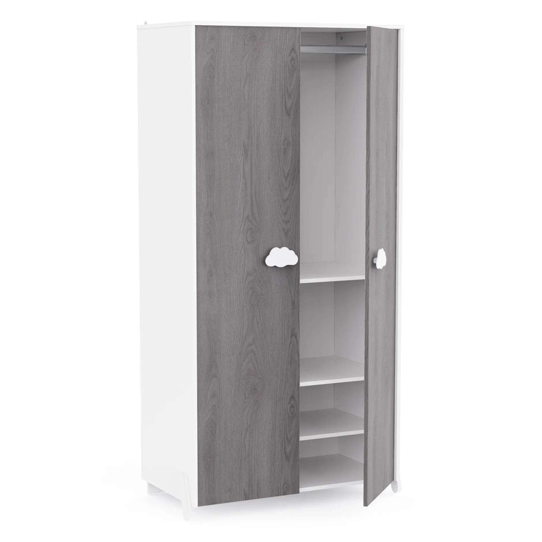 Afin de ranger les vétements de votre Bébé. Découvrez l’armoire 2 portes ALDINA avec 1 penderie et 3 rayons.