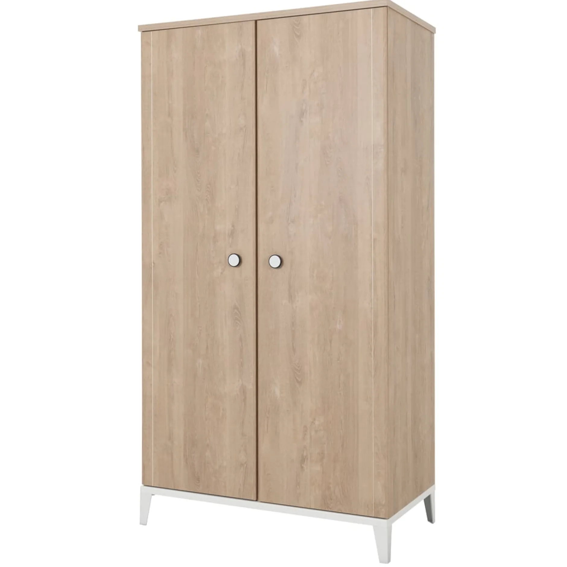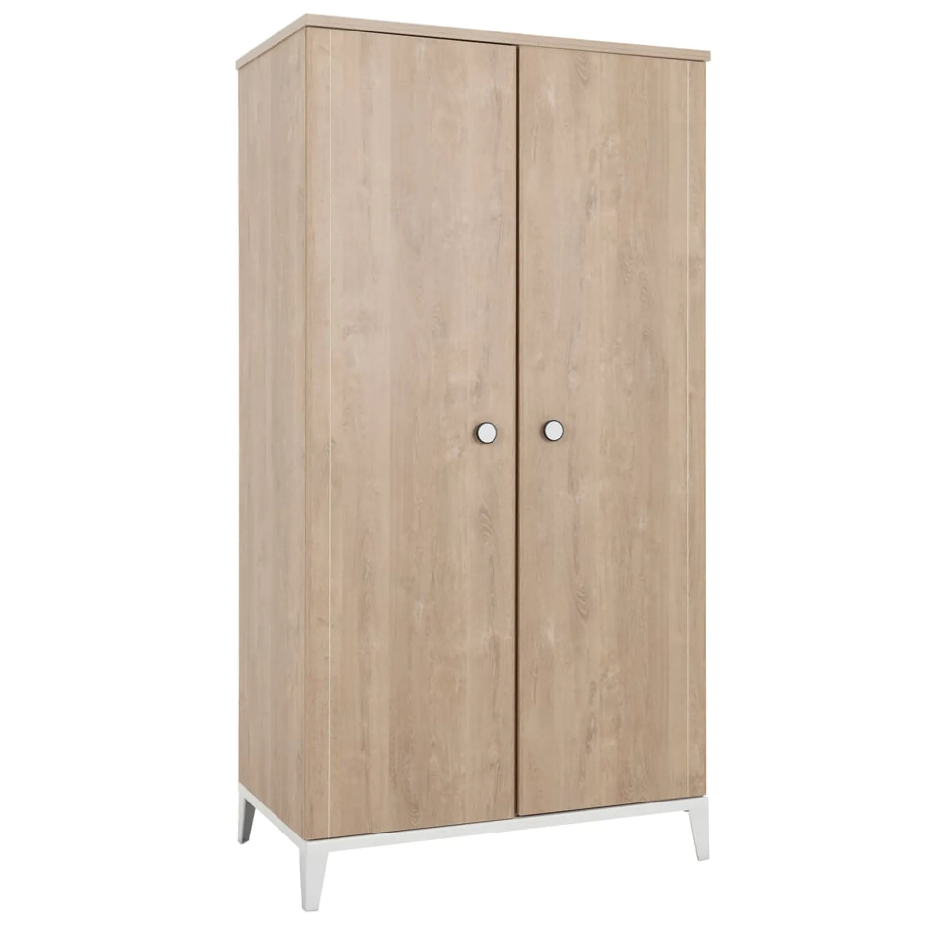 Les panneaux de l’armoire deux portes sont conçus en particules de bois revêtus de papier imitation chêne blond. Le choix de ces matériaux permet d’allier à la fois résistance à l’épreuve du temps et légèreté. Lorsque bébé grandit, vous pouvez facilement revoir l’agencement des meubles pour libérer de l’espace et lui offrir un terrain de jeu où il pourra s’épanouir.