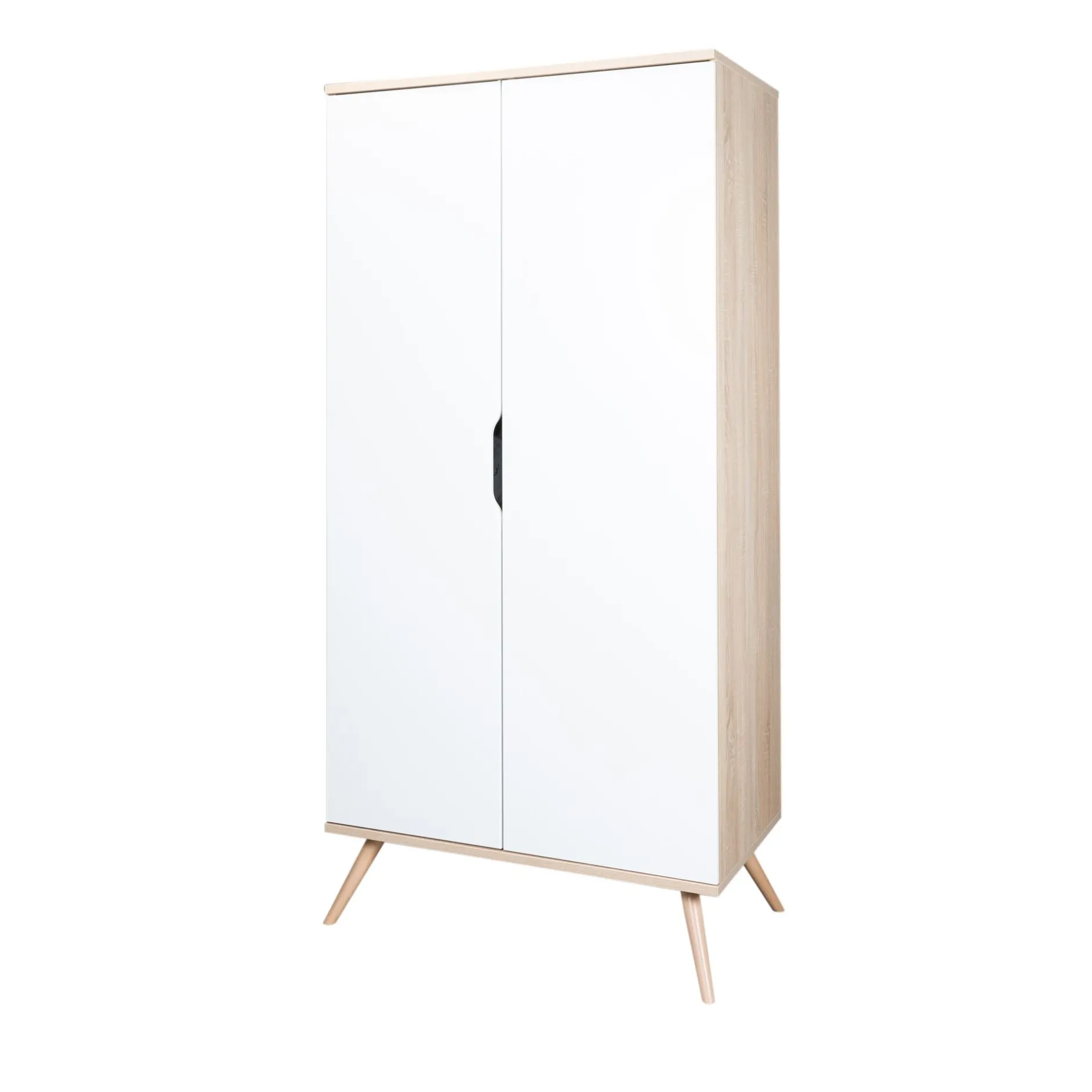 Cette grande armoire de la collection SIXTIES a tout pour plaire. Clin d’oeil aux meubles rétro, elle associe des décors blanc et bois et des pieds coniques inclinés pour parfaire son style vintage. Elle est dotée de 2 portes derrière lesquelles se cachent de grandes étagères et des penderies pour les vêtements et les accessoires de bébé. Pour une chambre dans un style total rétro, n’hésitez pas à associer cette armoire au lit et à la commode de la même gamme.