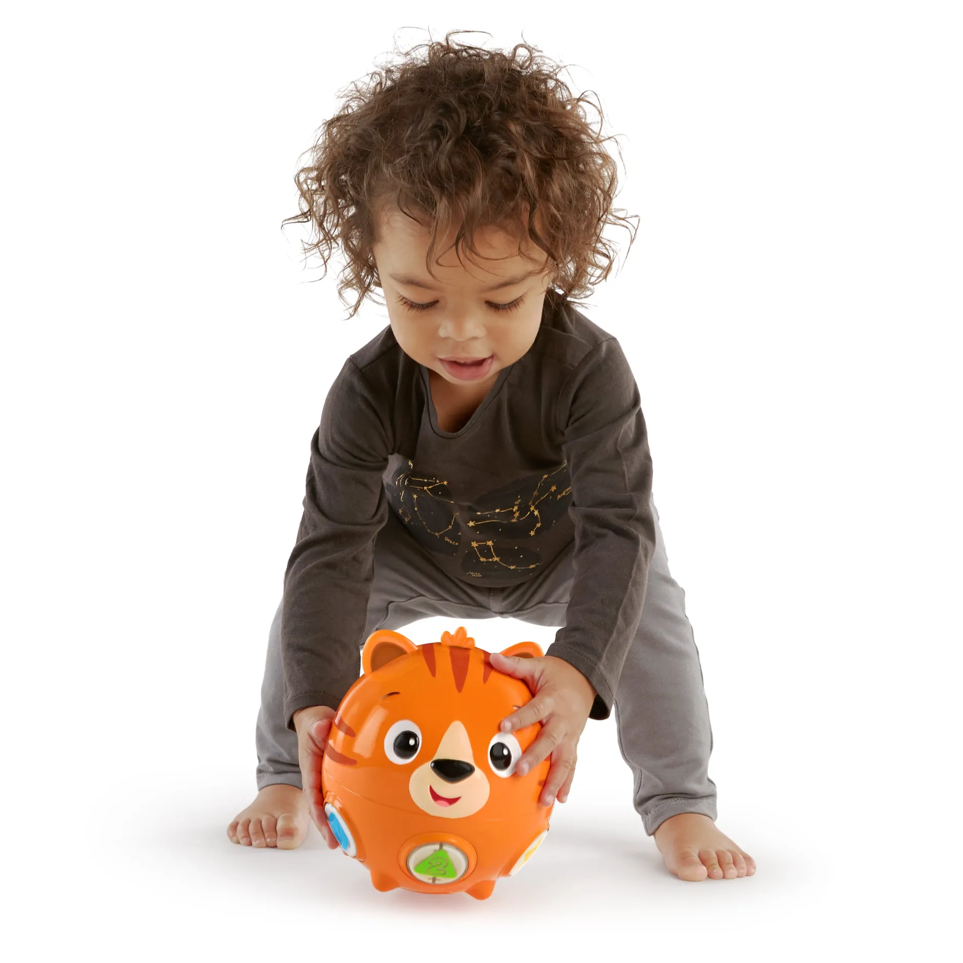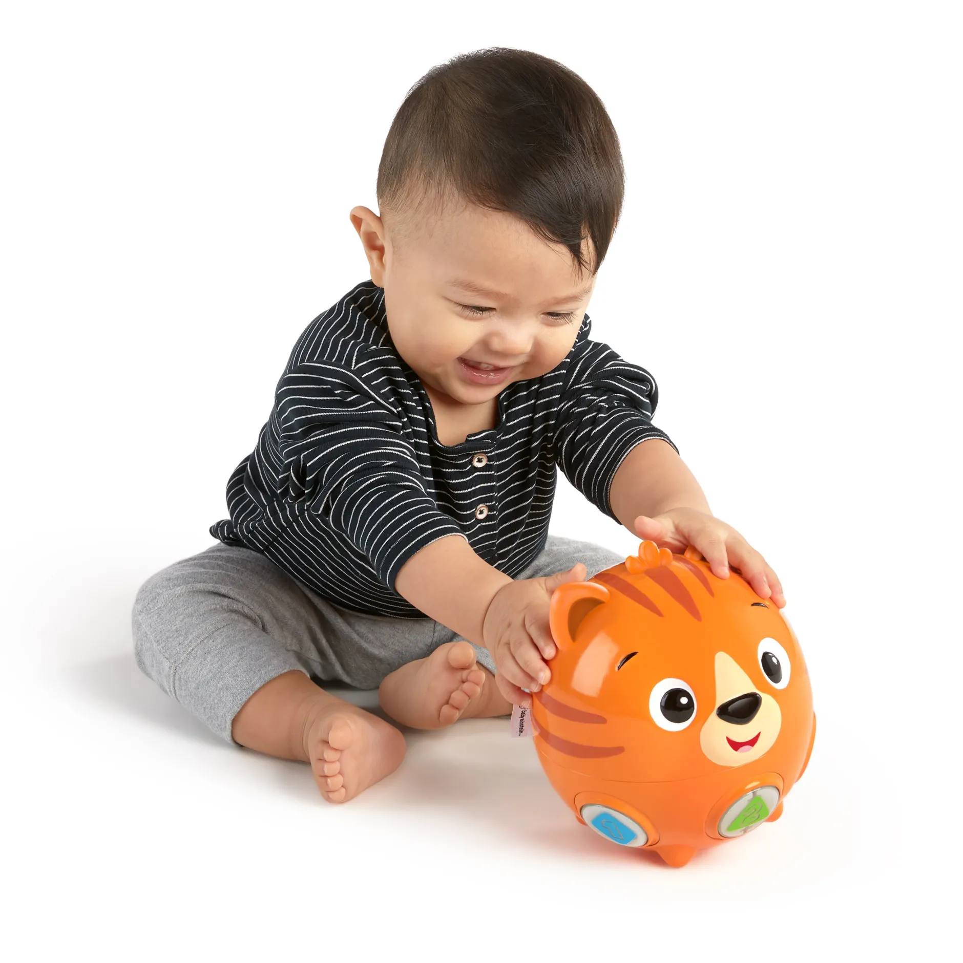 Développez ses capacités motrices de base tout en découvrant le langage avec ce tigre culbuto ! Le Tinker’s Crawl Along Songs™ pour jouer à plat ventre de Baby Einstein de déplace et remue pour encourager bébé à ramper et à le pourchasser. Appuyez sur les boutons pour écouter les formes, les nombres et les couleurs ou lancer la musique. Avec 12 mélodies et 3 langages, il y a tant à découvrir en rampant !