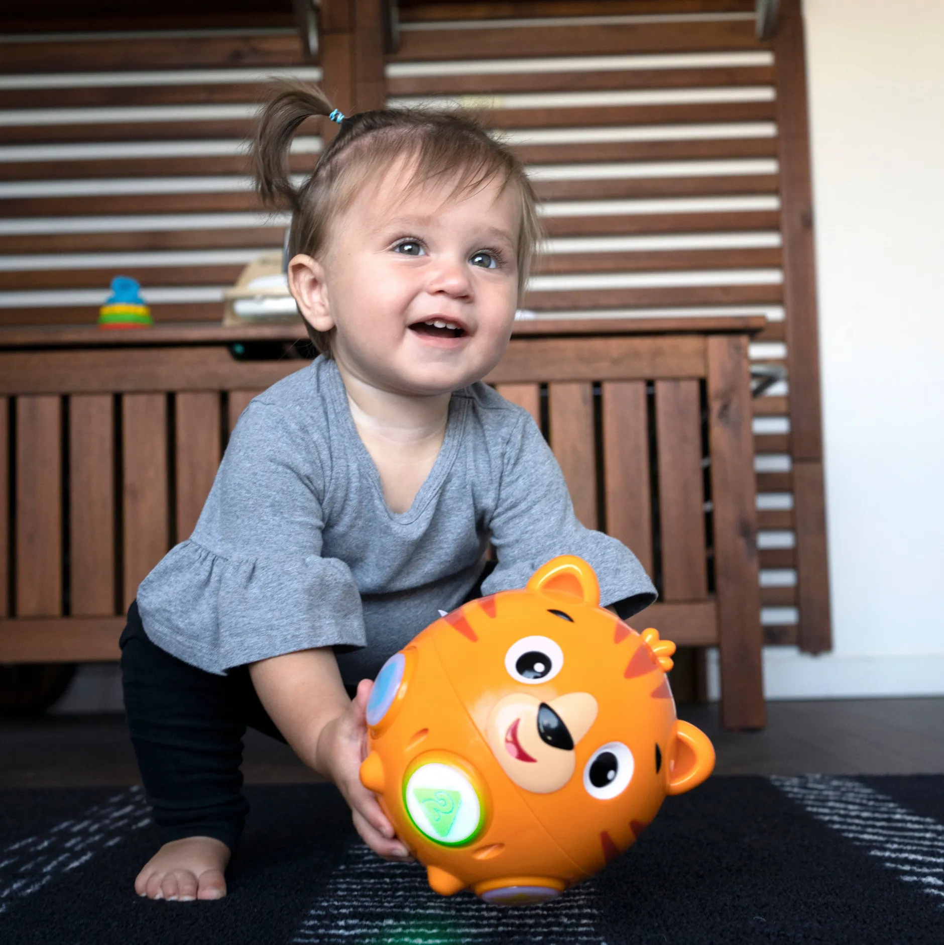 - Roule et oscille pour être pourchassé par bébé