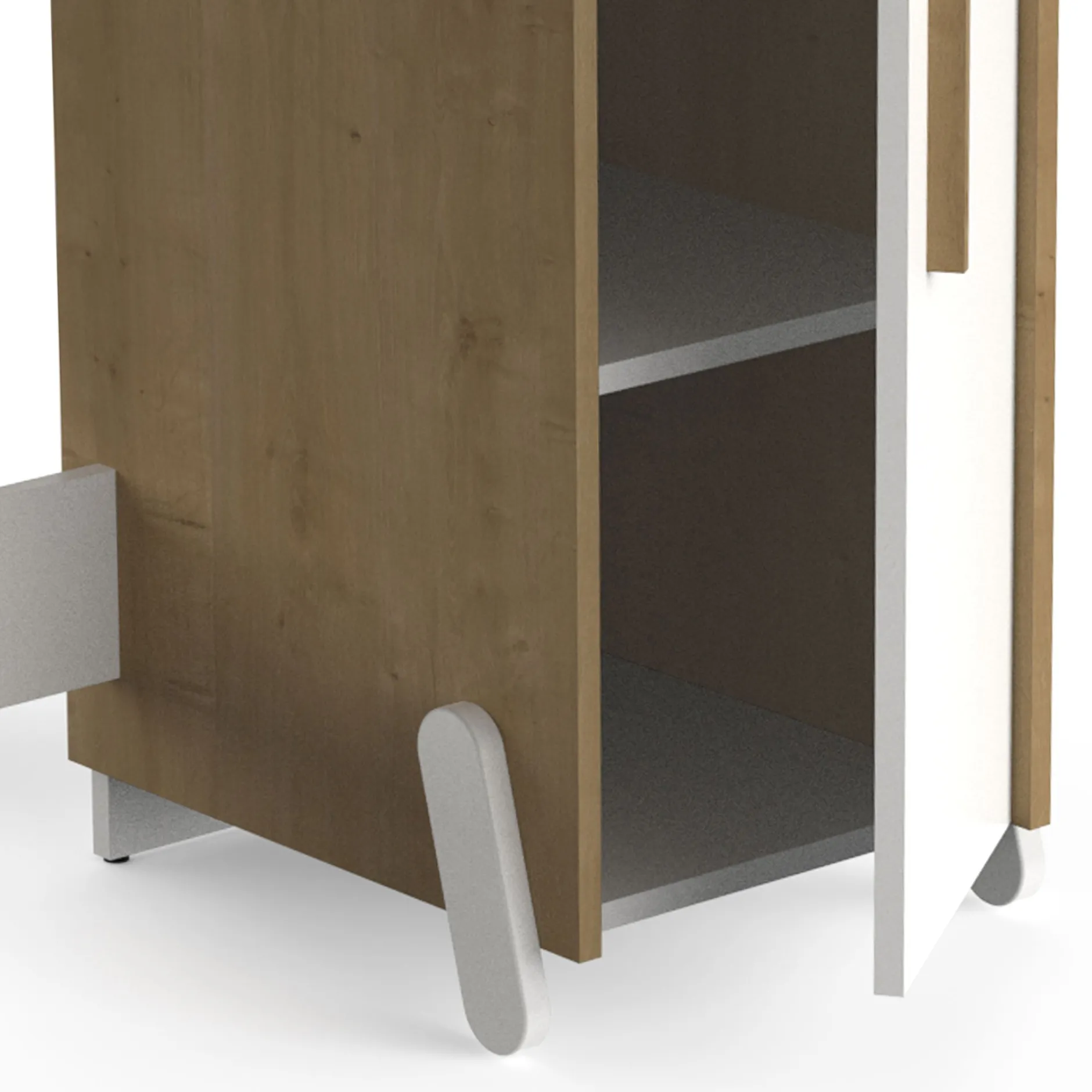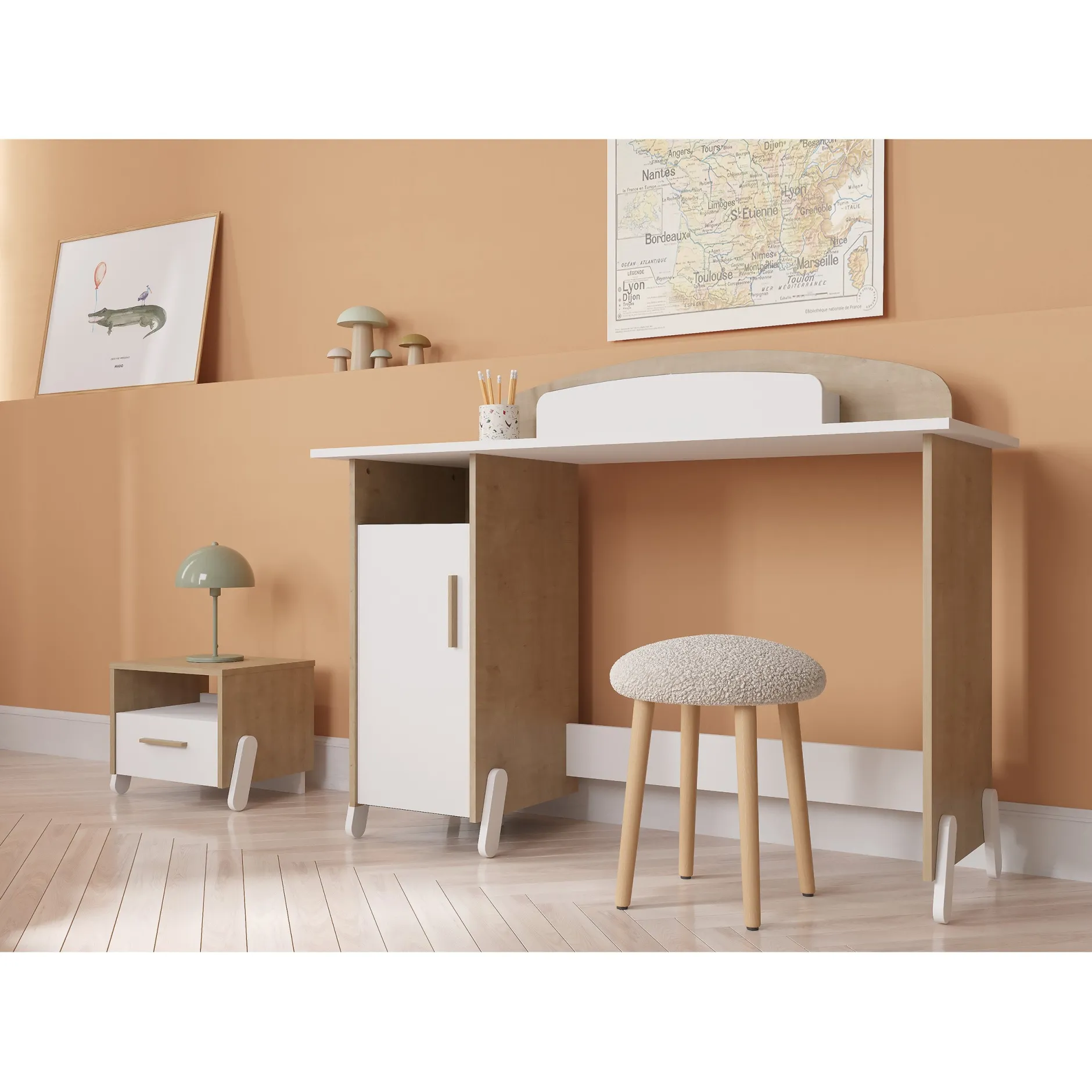 Créez une ambiance rétro avec la chambre Naili, mélangeant chêne naturel et couleur blanche pour une combinaison épurée et chaleureuse pour votre bébé.