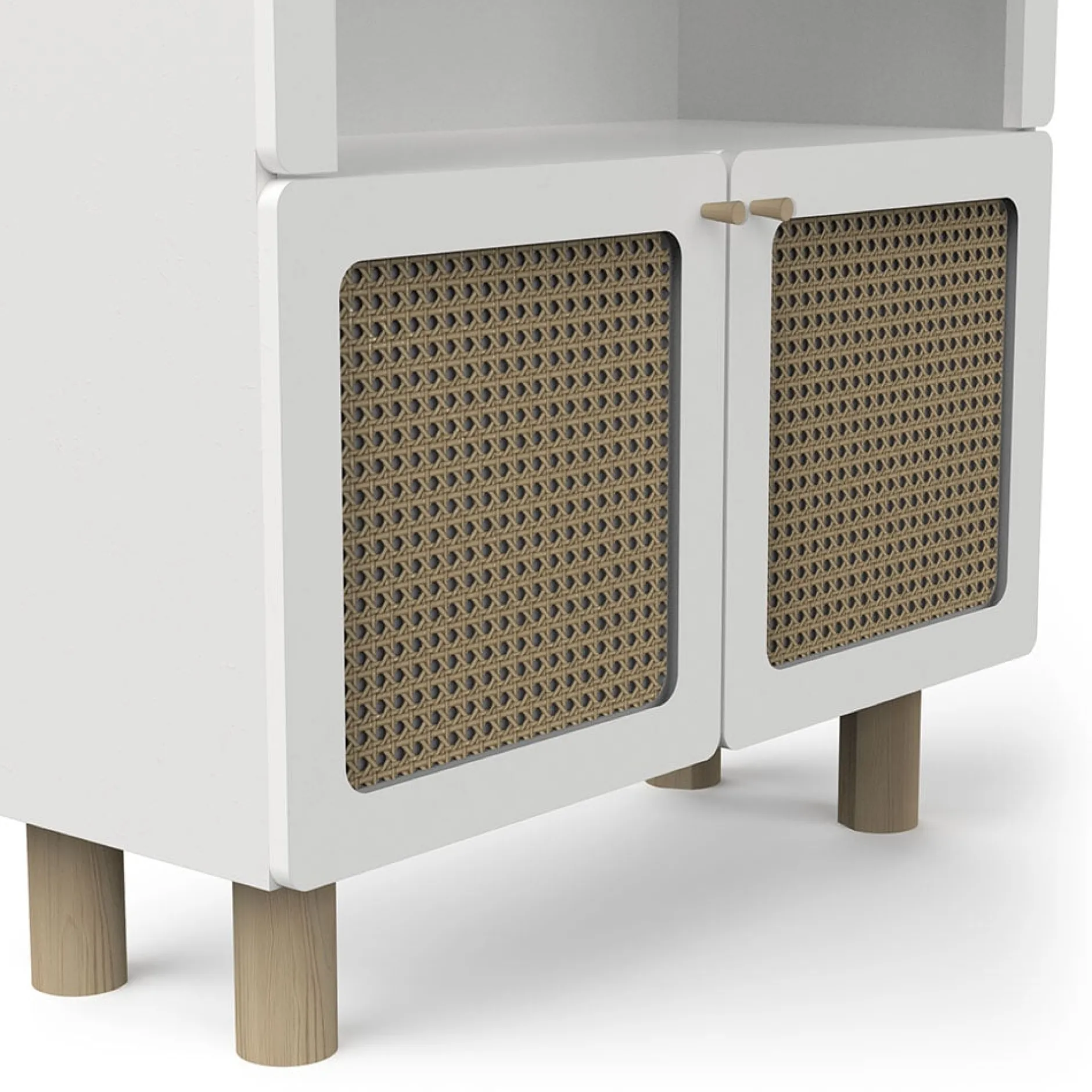 - MDF + bois laqué, bois naturel, cannage