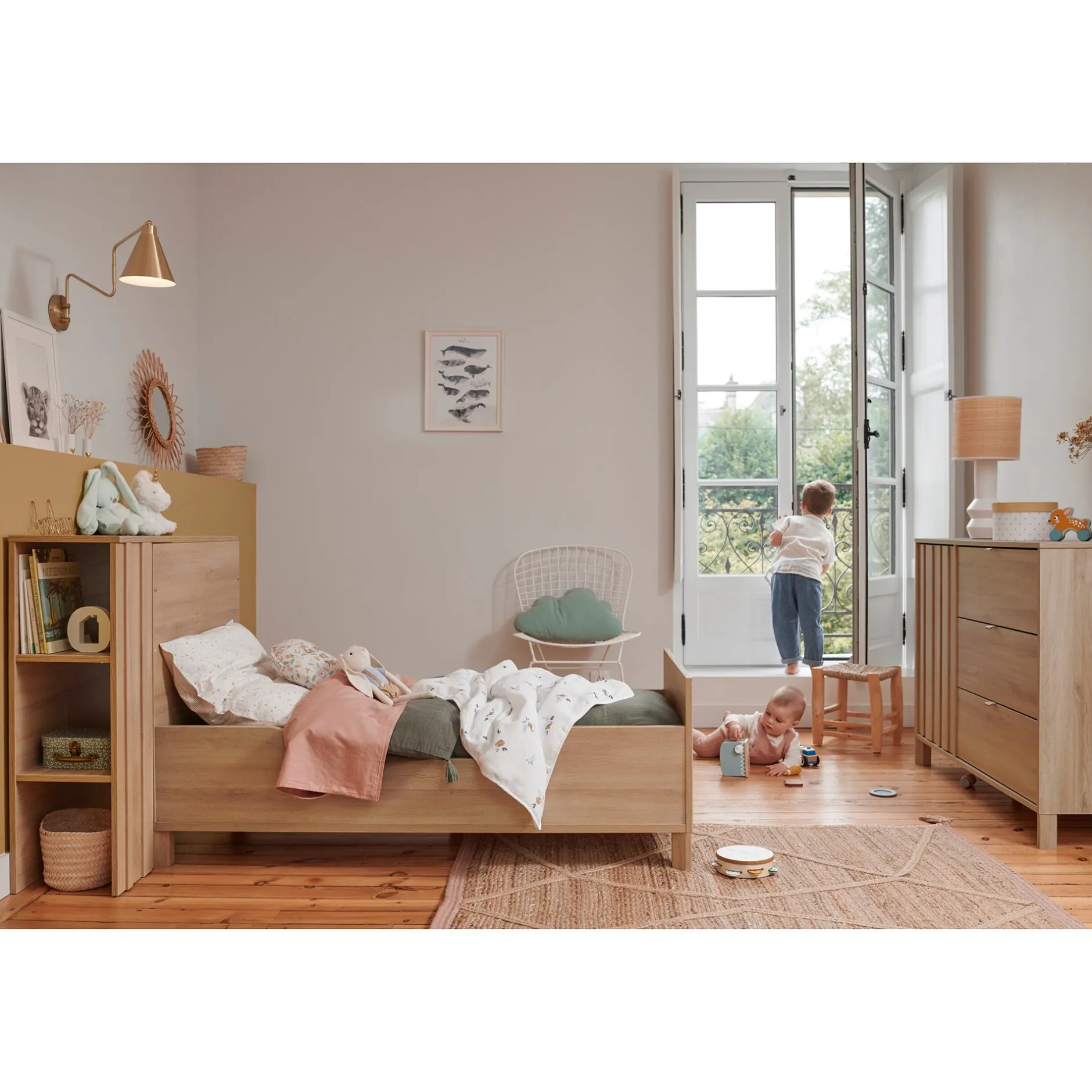 Complétez le lit 70x140cm Calypso avec cette tête de lit dans un style naturel chic. De jolies teintes chêne doré et un effet « claustra » viennent signer ce meuble pour créer une ambiance douce et chaleureuse.