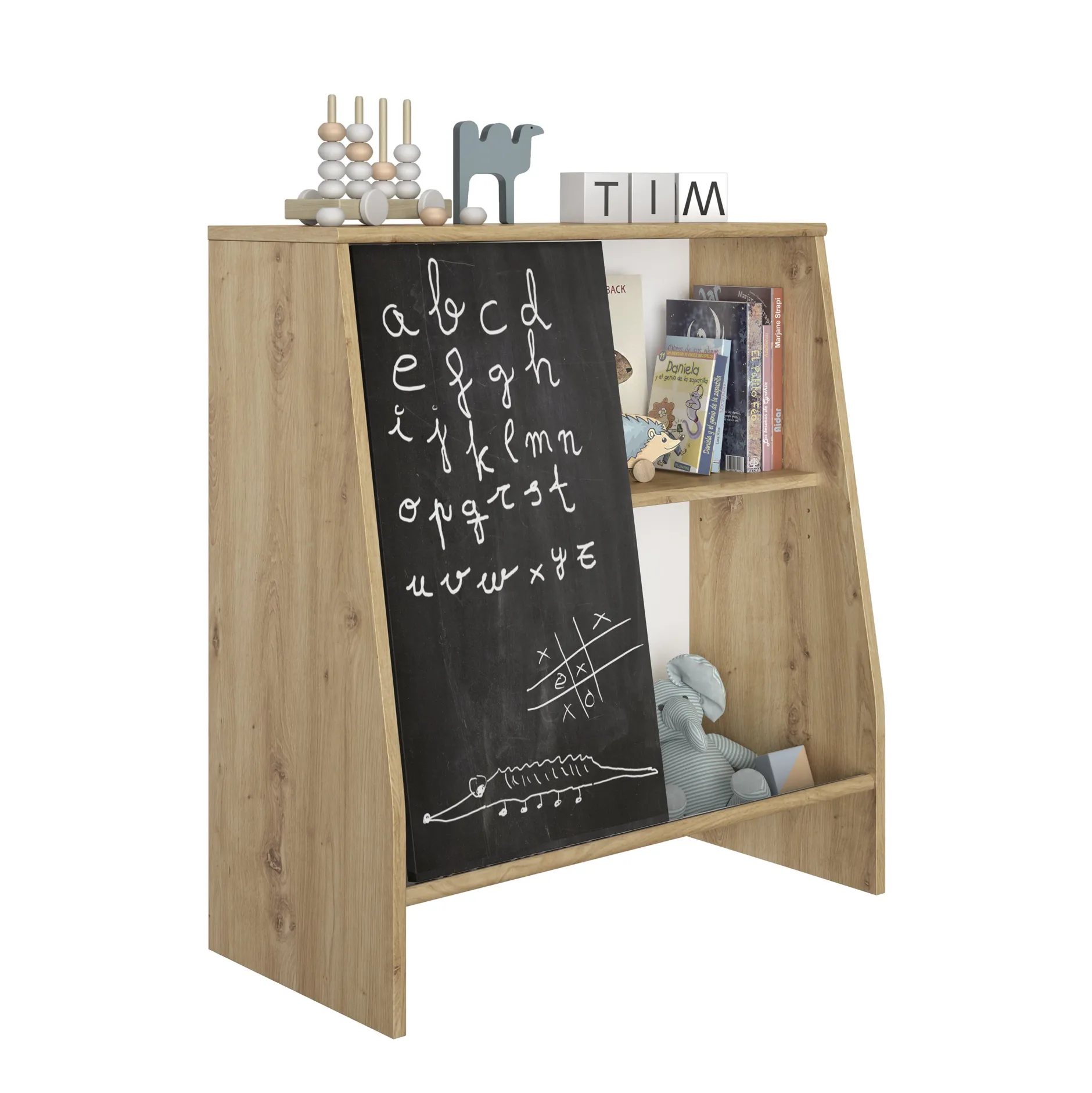 Issue de la gamme Essentiel de la marque Française Galipette, cette petite bibliothèque et son tableau noir se veut ludique et pratique. Imaginée pour les tout-petits, la bibliothèque Tim trouvera facilement sa place dans la chambre de votre enfant !