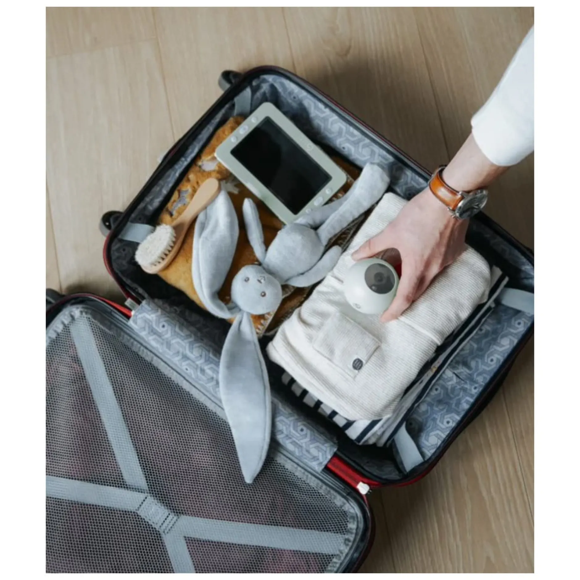 Le babyphone caméra qui s’emporte partout grâce à ses batteries rechargeables et ses nombreux accessoires d’accroche.