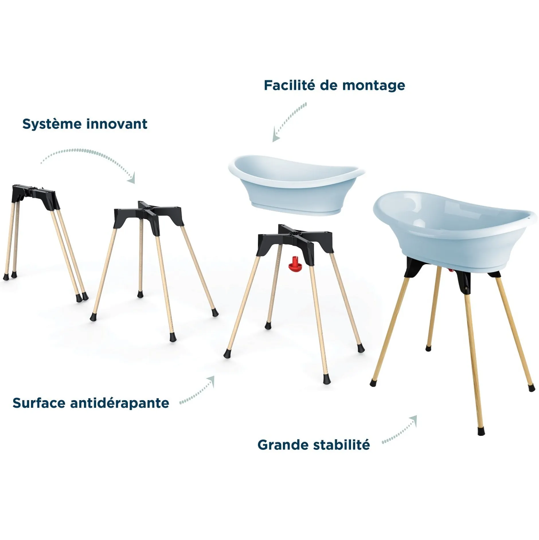 De plus, la baignoire VASCO peut accueillir l’un de nos transats, afin que bébé soit à l’aise lors du bain. Le pied fabriqué en bois, est léger et design. Il se plie et se déplie pour un rangement facile dans les petits espaces, c’est un gain de place assuré contrairement aux autres supports de baignoire traditionnels. Un fois plié, il peut se ranger derrière la porte de la salle de bain ! Lorsque le bain est fini, le tuyau de vidange permet de vider la baignoire sans effort, pratique pour soulager le dos des parents. Le kit VASCO devient l’indispensable de vos salles de bain !