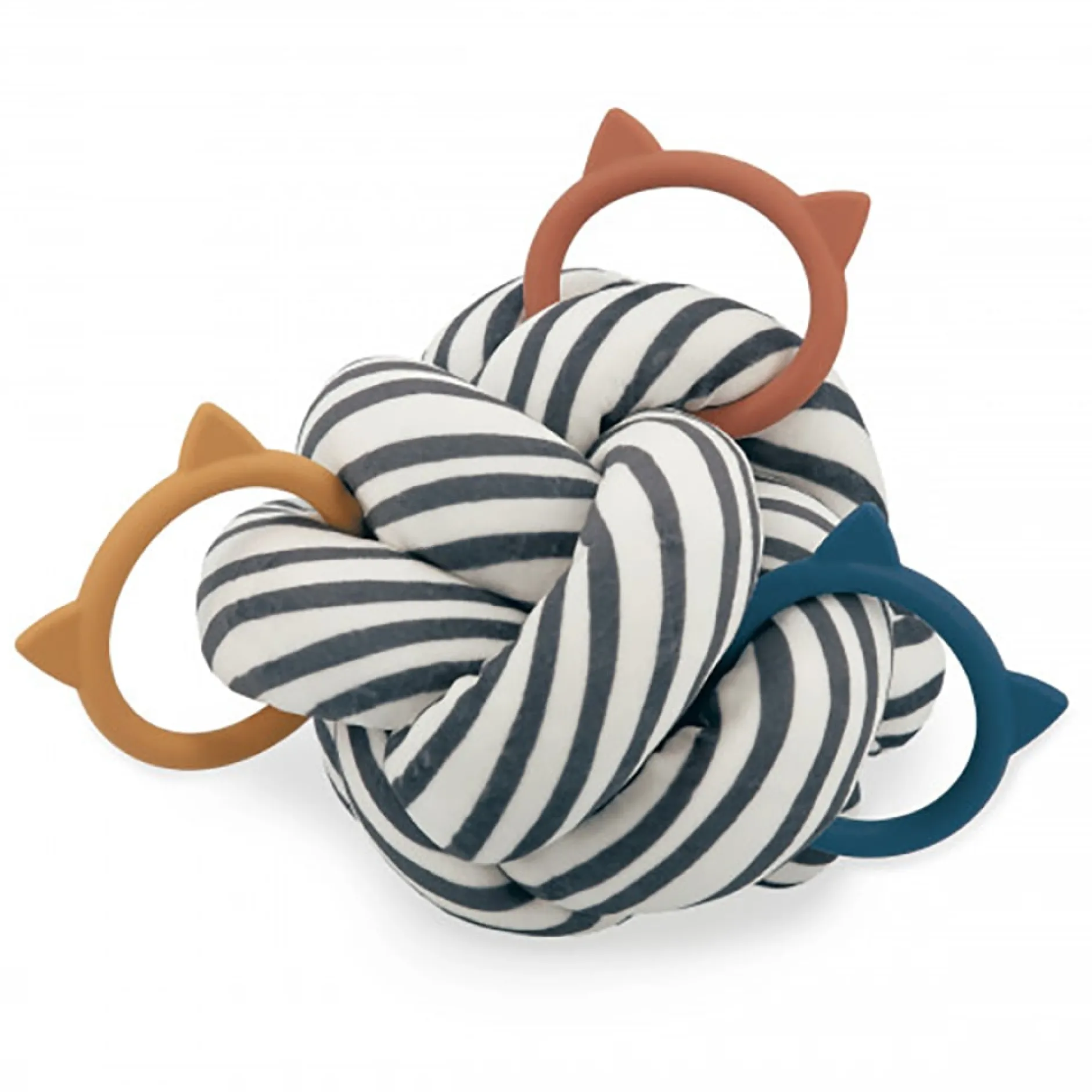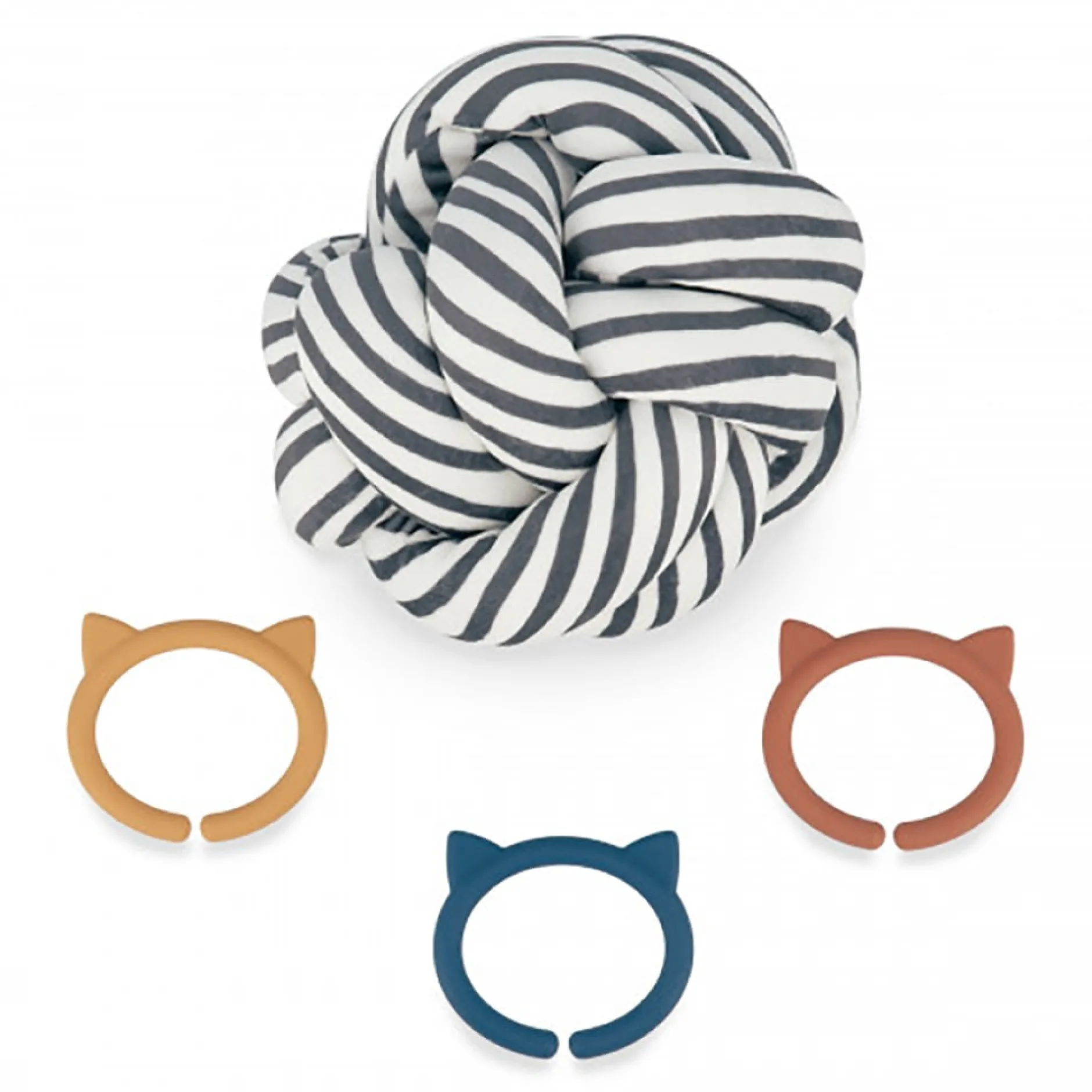 Une balle en forme de nœud dédiée à l’éveil sensoriel de bébé ! Adaptée dès la naissance, cette balle permet de stimuler la vue, le toucher et la préhension de bébé. Pour cela, elle présente une forme originale faite d’entrelacements, ce qui la rend facile à saisir par bébé et encourage sa motricité fine.