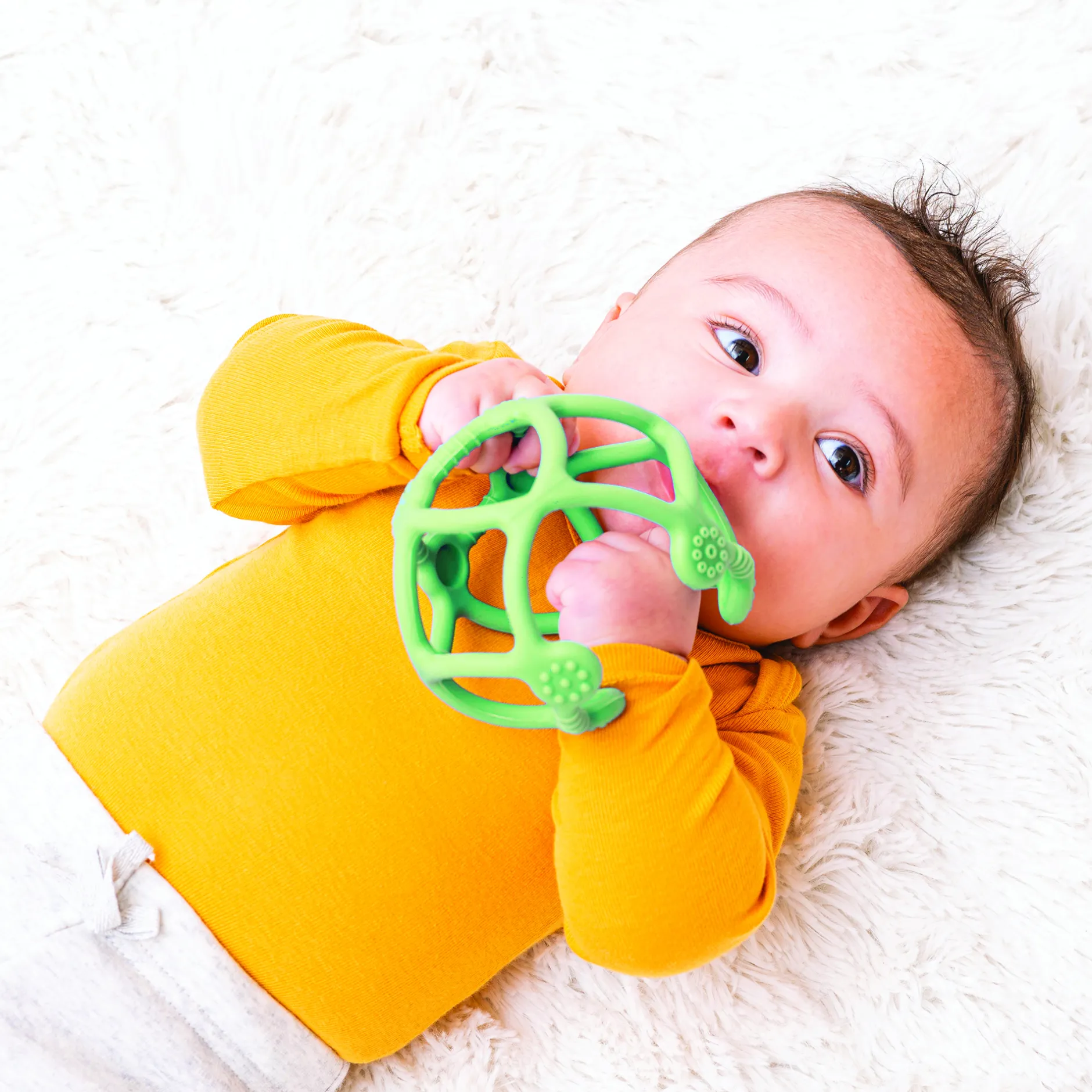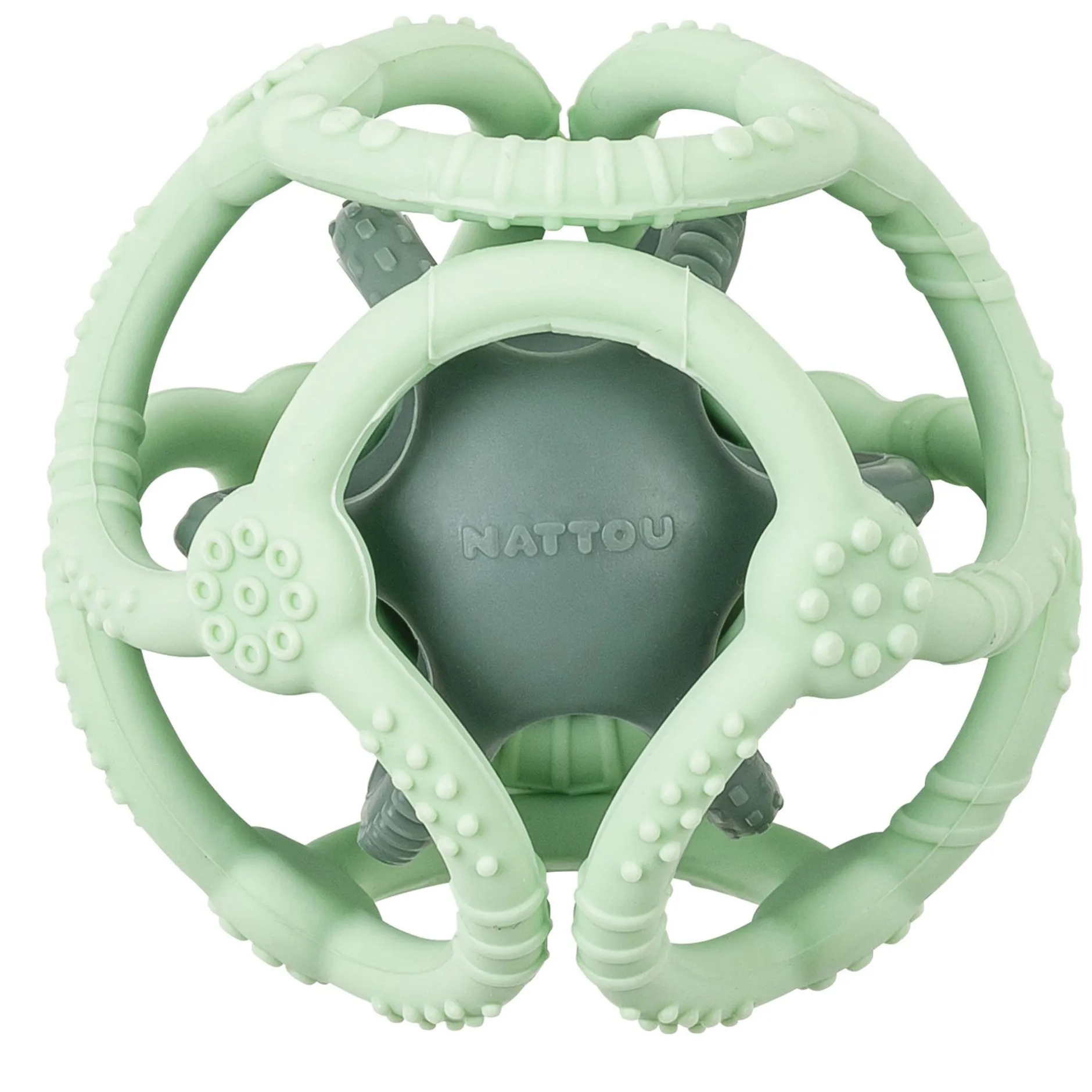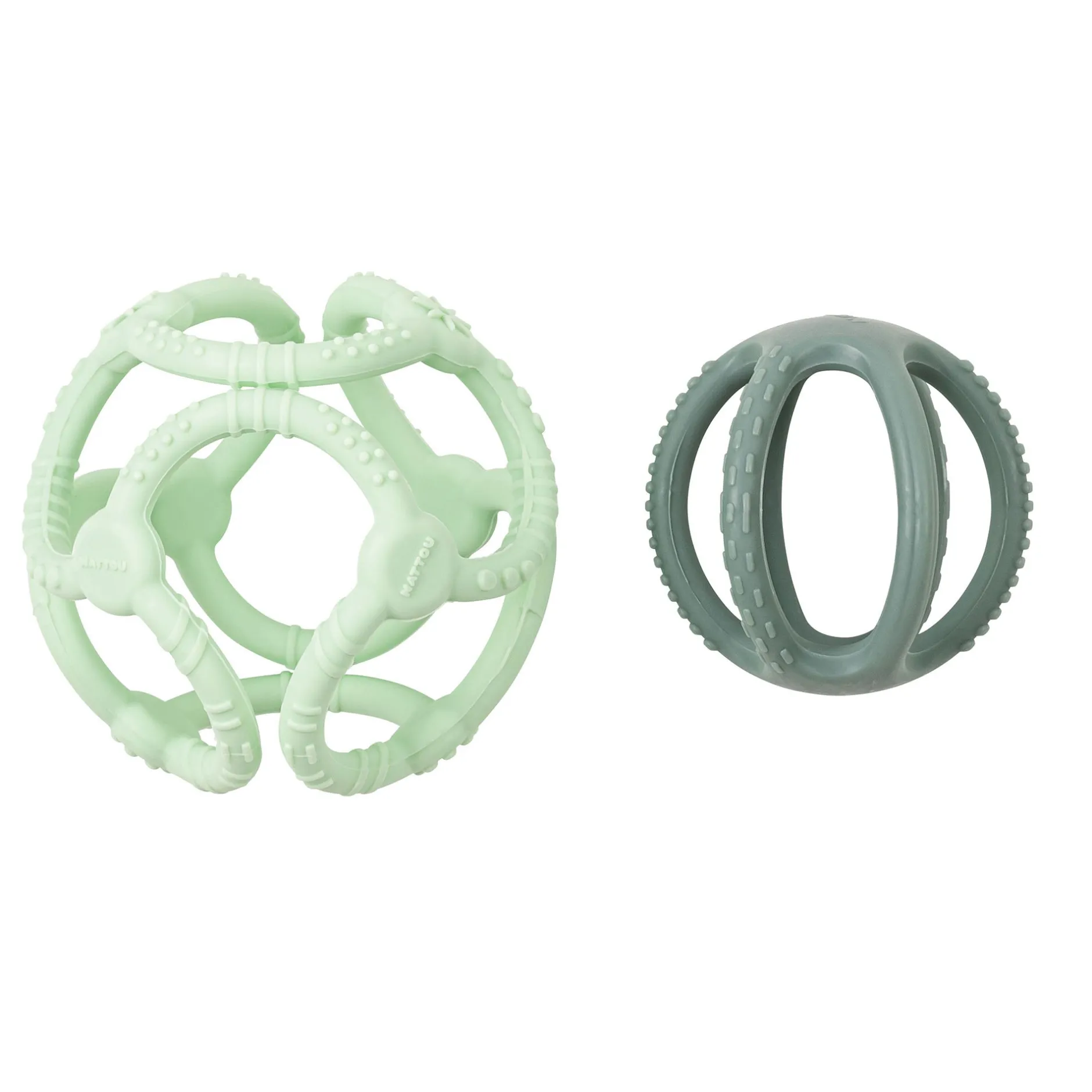 Set de 2 balles en silicone, faciles à attraper et à mâchouiller par bébé; couleurs attirantes.