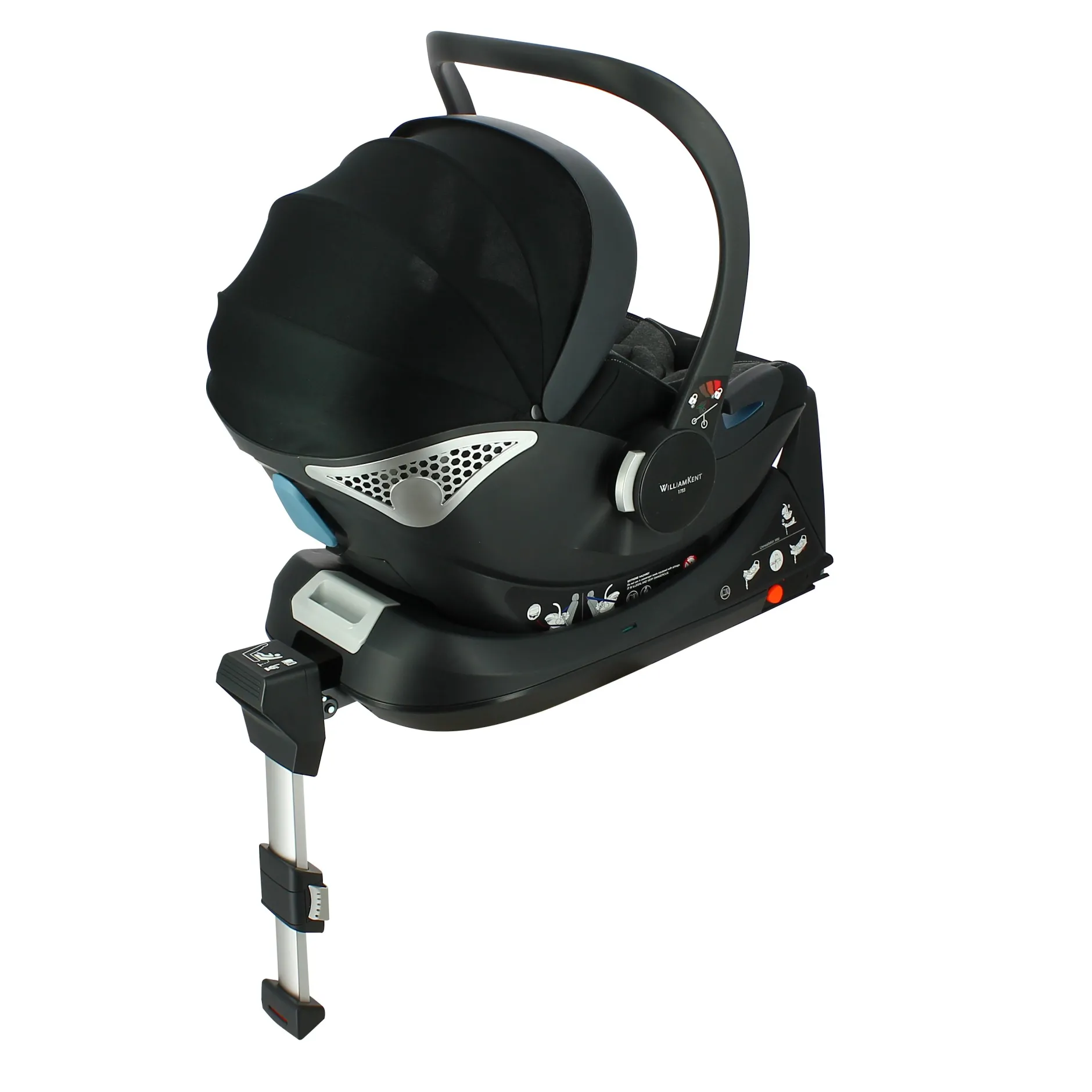 Base i-Size pour siège auto Orion William Kent 1733. La base Orion i-Size peut être installée dans tous véhicules disposant de broches isofix (sous réserve d’avoir déconnecté les airbags du siège correspondant si installation à l’avant – selon véhicule compatibles).