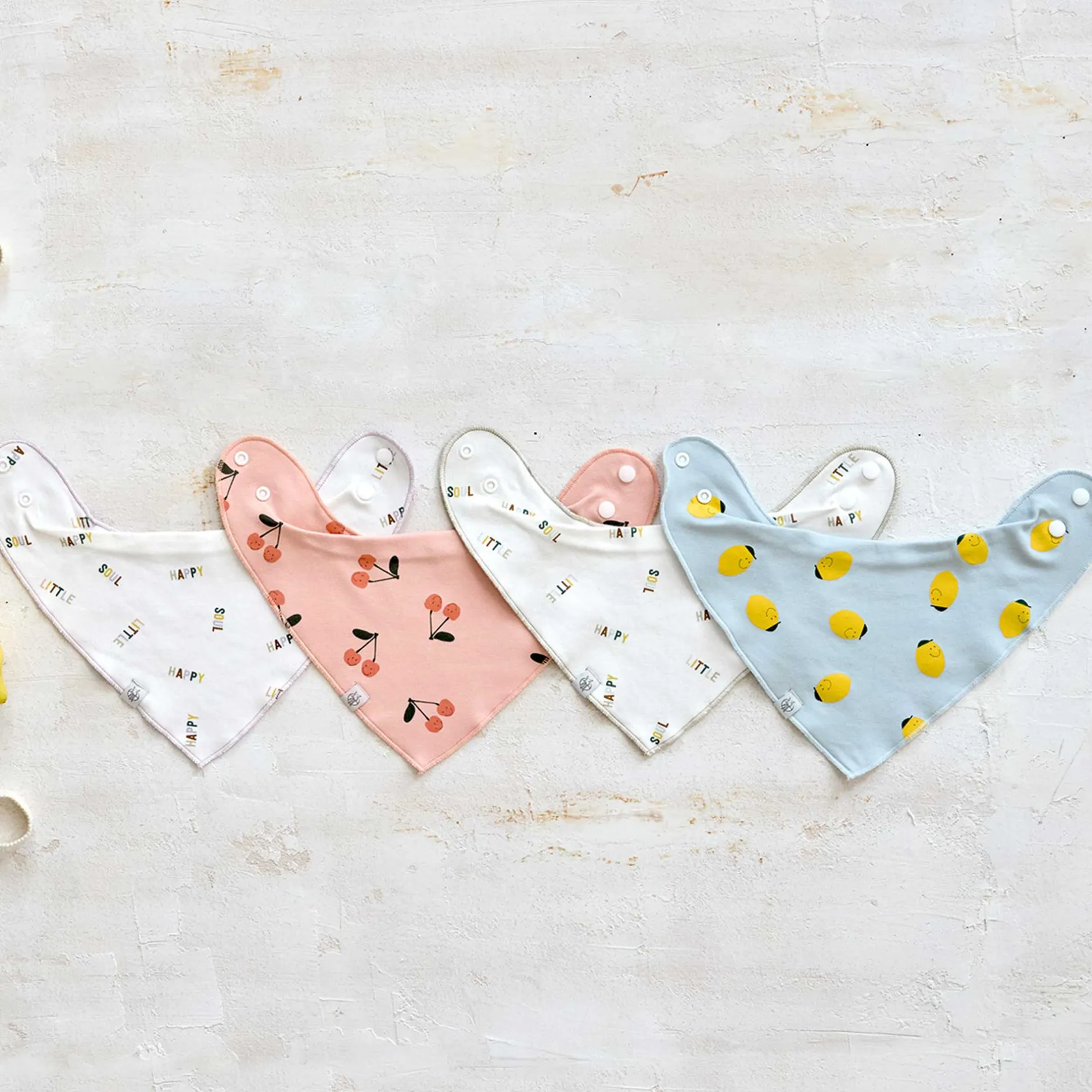 Les deux bandanas imperméables pour bébé au design Happy Fruits Cerise sont à la fois stylées et pratiques.