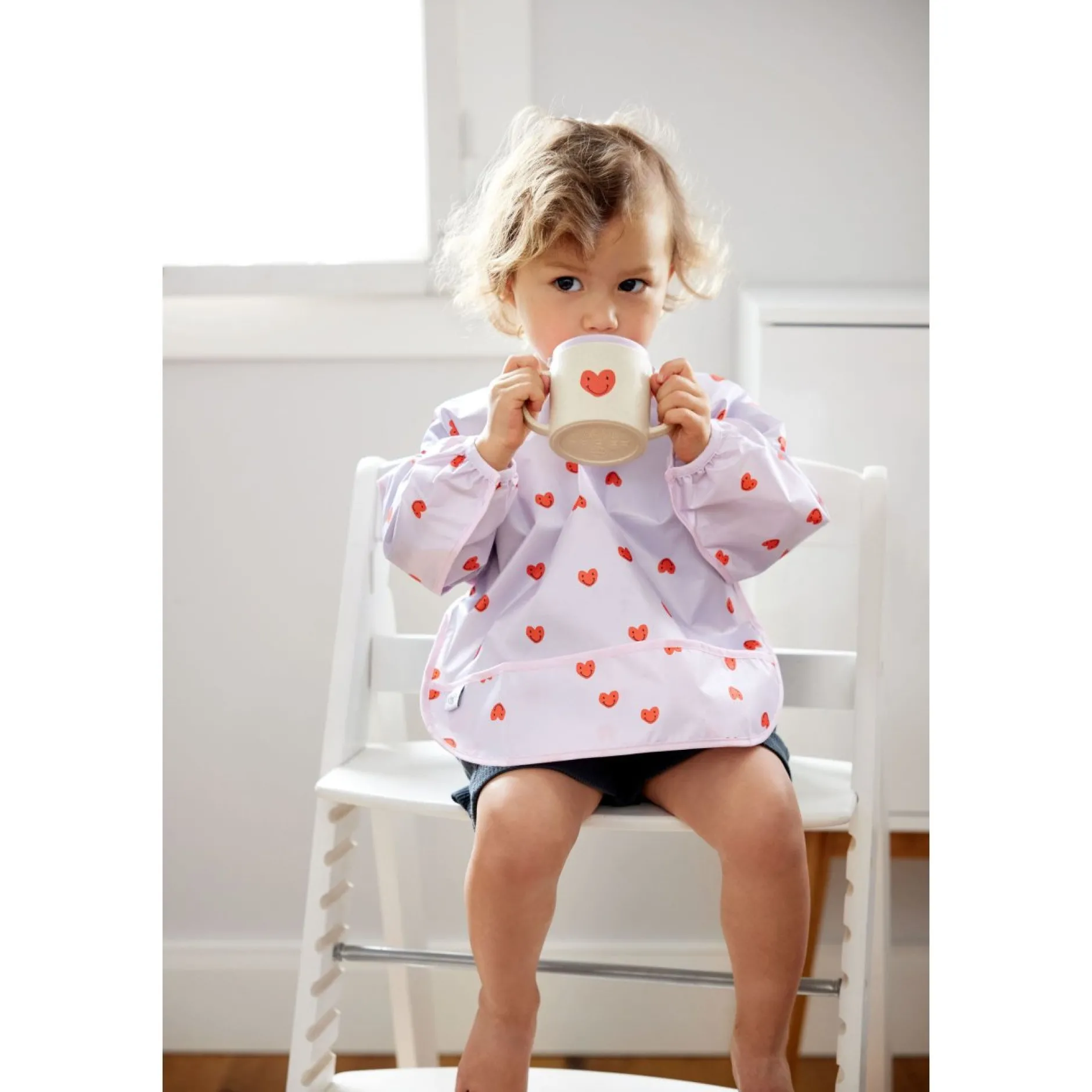 Les petits peuvent donc s’adonner librement à des activités créatrices , ou savourer leurs repas, sans craindre de se salir, car leurs vêtements restent propres et secs, grâce aussi à la poche ramasse-miettes.