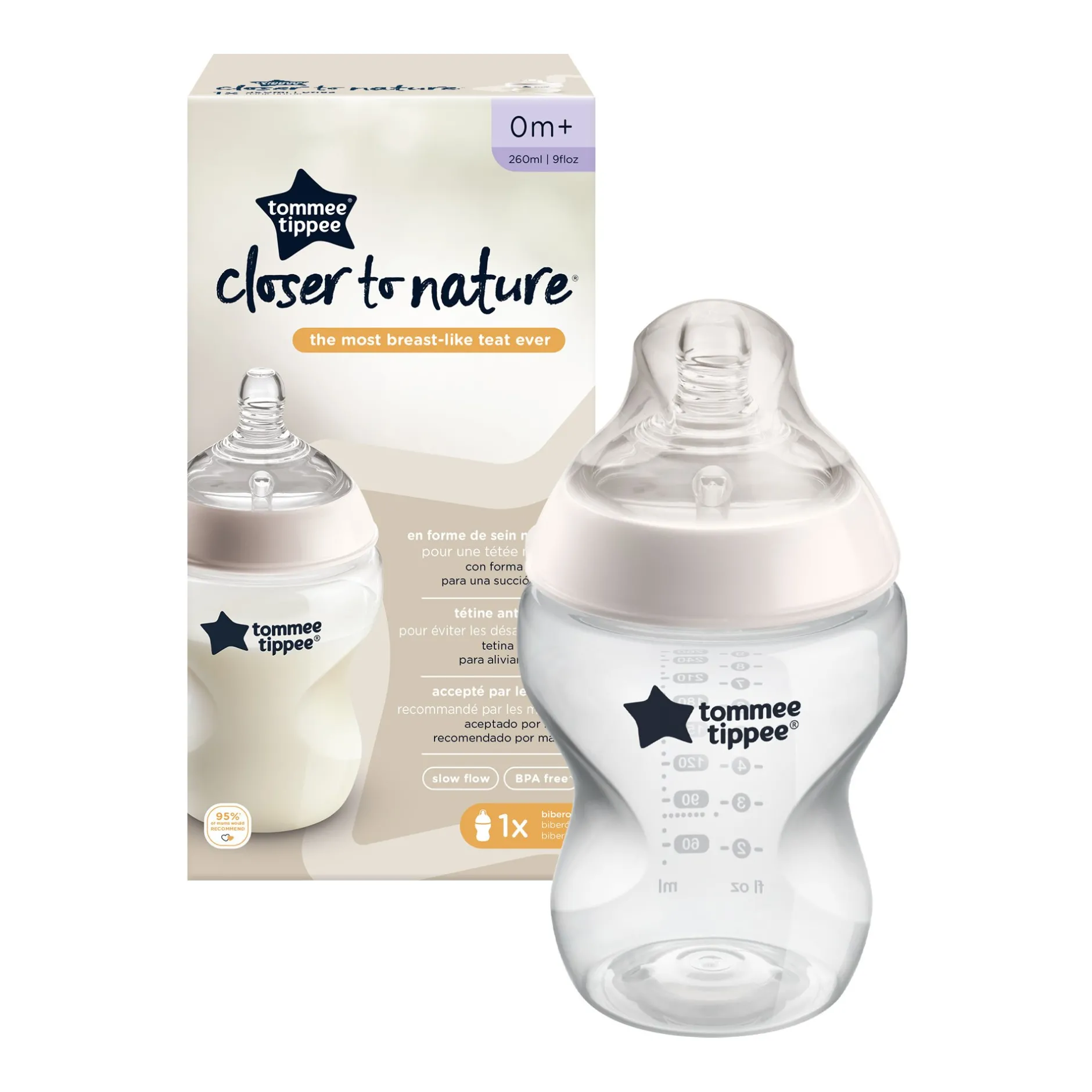 Tous les biberons Tommee Tippee Closer to Nature sont sans BPA pour une tranquillité d’esprit totale.