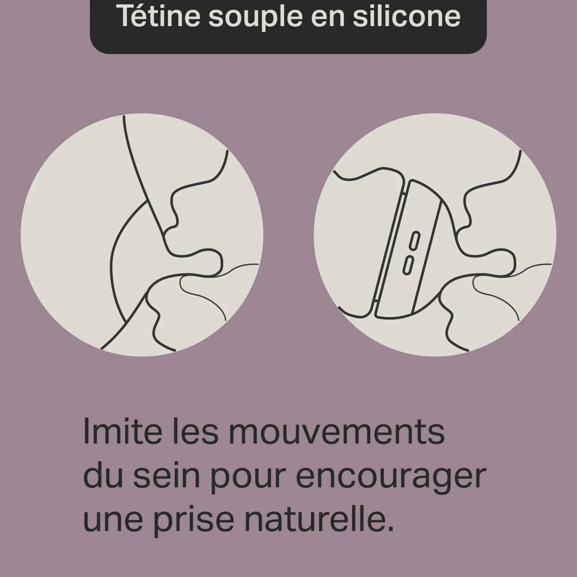 - Prise du sein naturelle: Tétines conçues pour favoriser une prise du sein naturelle, réduisant l’ingestion d’air et évitant la confusion des tétines lors du passage du sein au biberon et inversement.