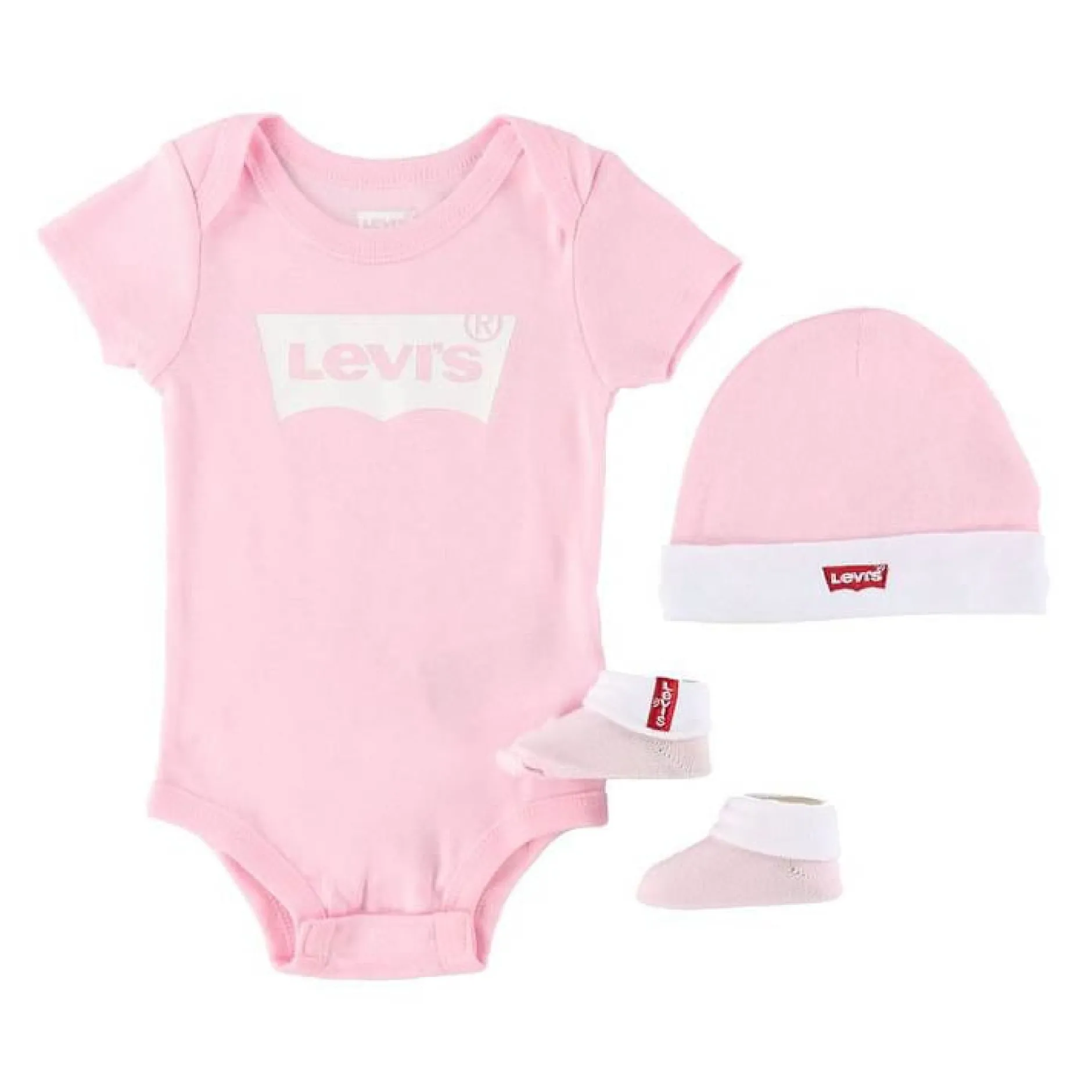 Craquez pour ce coffret Levi’s Kids, parfait à offrir ! Il est composé d’un body avec le logo de la marque, d’un bonnet et d’une paire de chaussons.