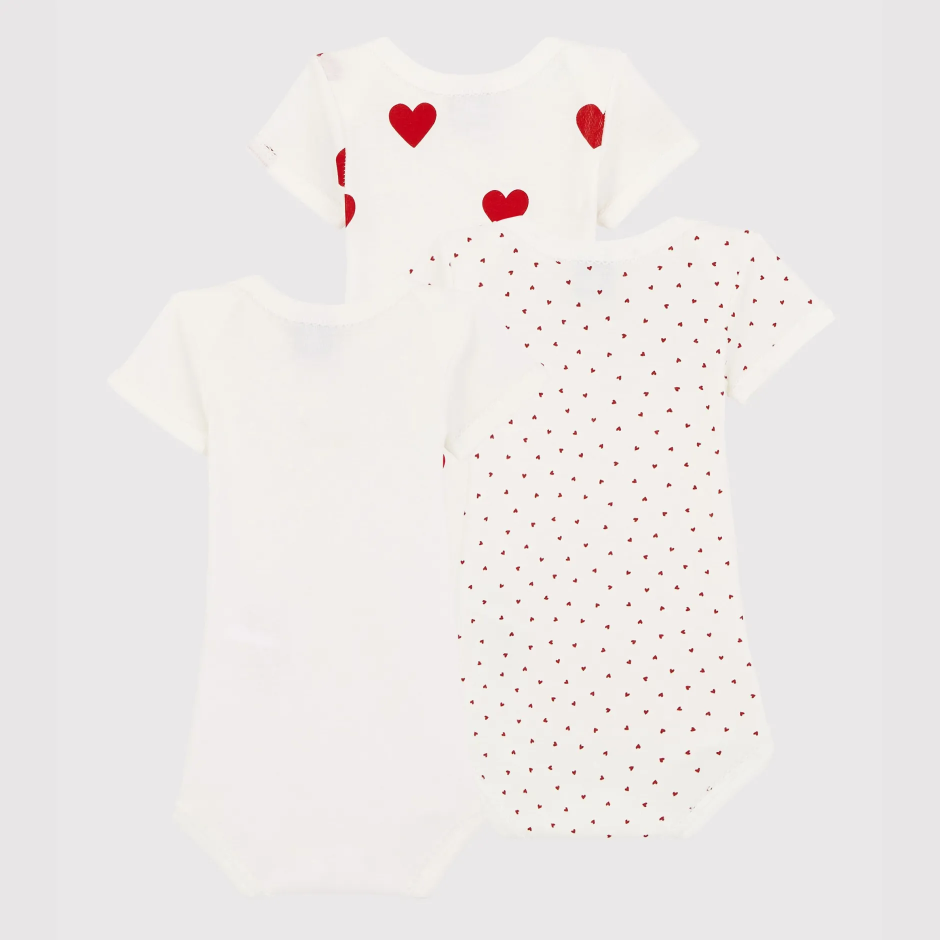 3 bodies manches courtes en côte, la matière emblématique de Petit Bateau. Encolure américaine très pratique, pressions à l’entrejambe.
