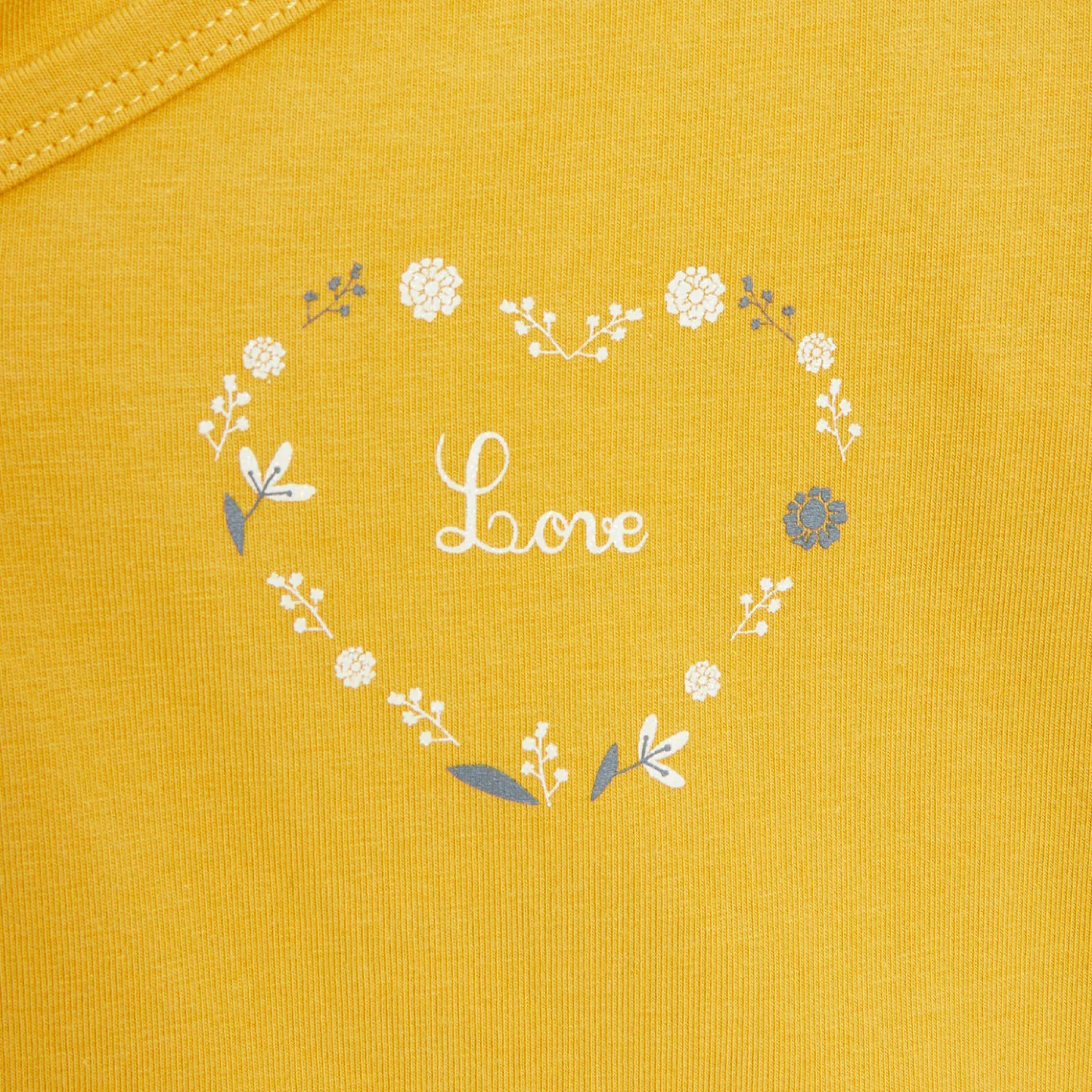 - Extérieur body jaune : 96% coton + 4% élasthanne