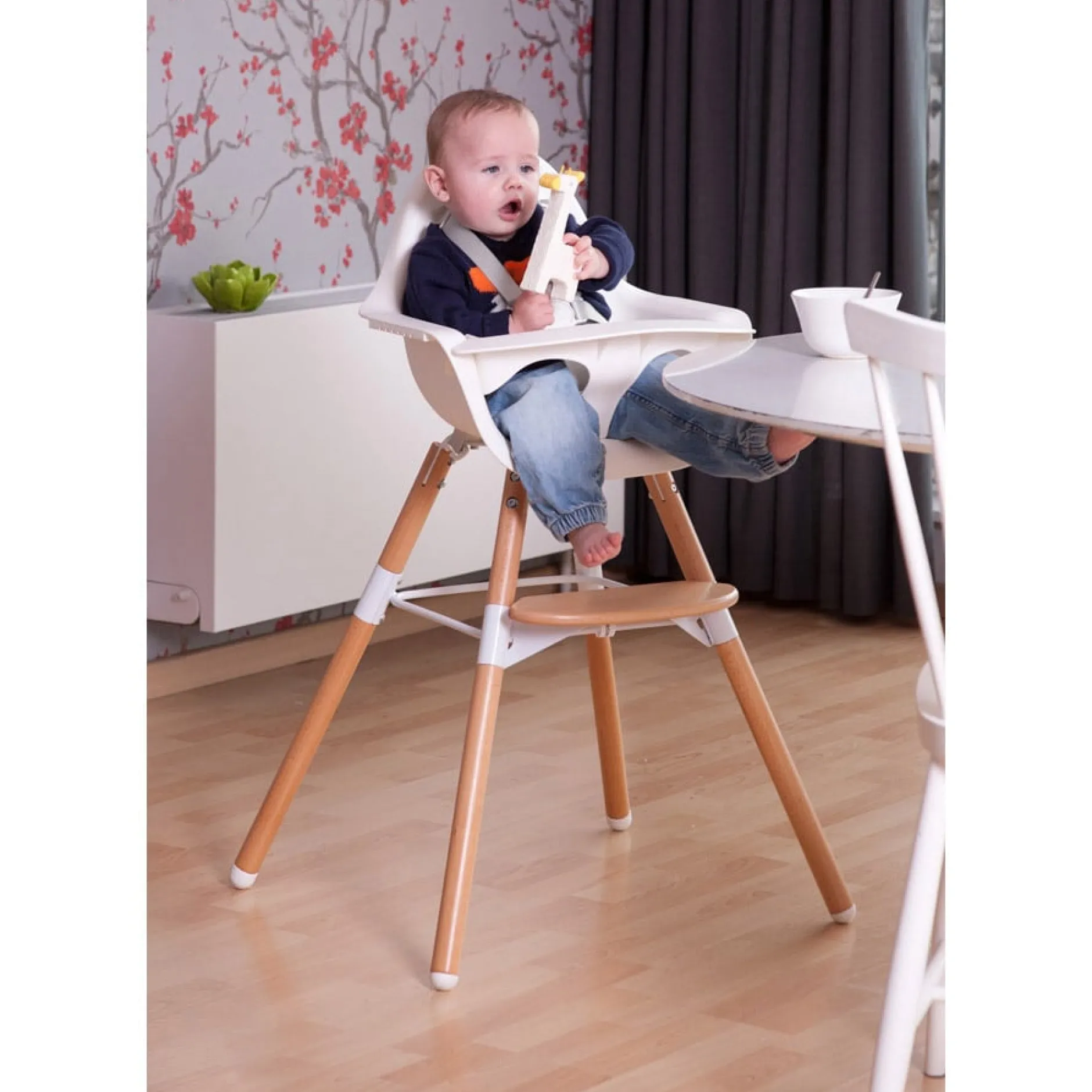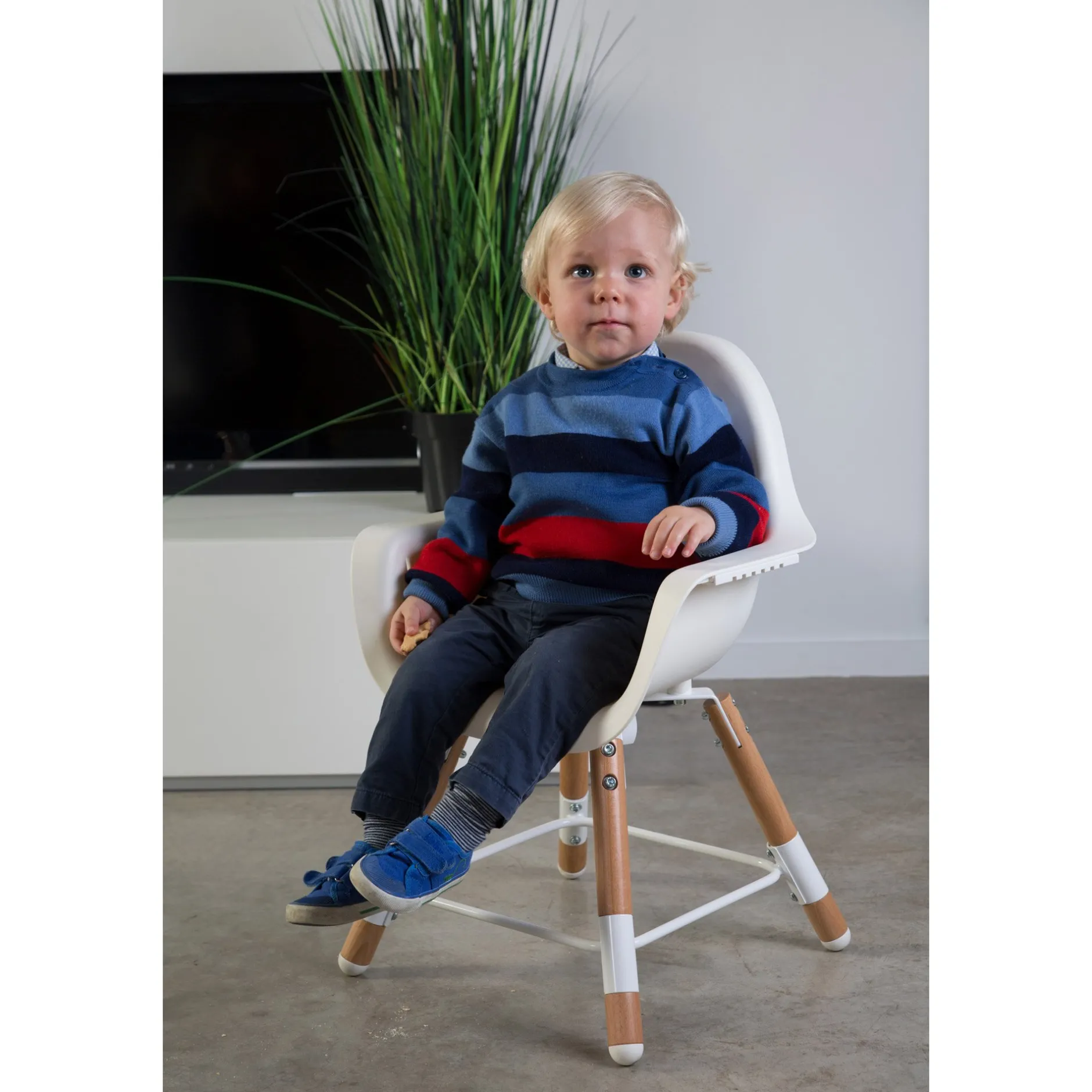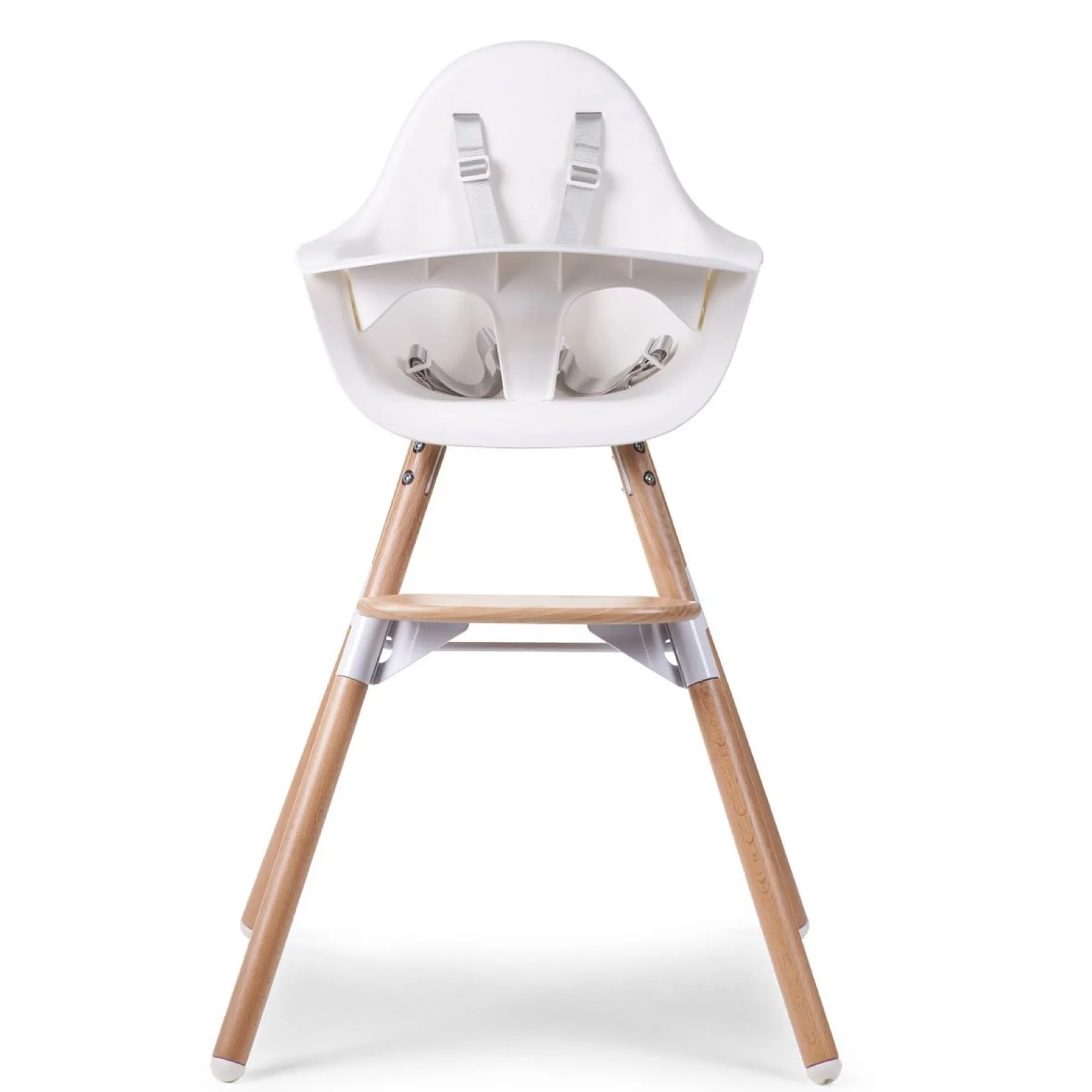 EVOLU 2 toute dernière génération, conception innovante et ingénieuse. Chaque pied bénéficie d’un tampon caoutchouc anti-dérapant et réglable en hauteur, afin d’optimiser la stabilité de la chaise haute bébé EVOLU. Equipée d’un harnais 5 points d’attache, ajustable de 6 à 36 mois, et amovible pour enfants de plus de 36 mois. Equipée aussi d’un repose-pieds et d’un garde-corps de sécurité pour passer les jambes, avec un large accoudoir.