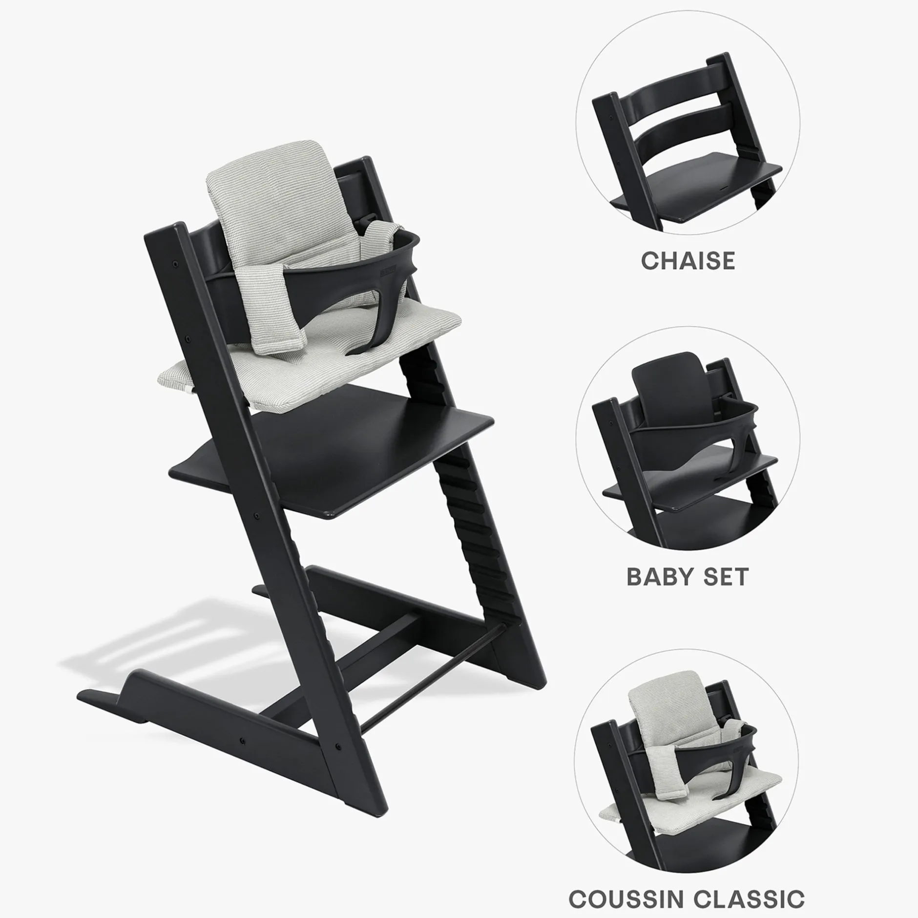 Le pack chaise haute Tripp Trapp® avec coussin Tripp Trapp® inclut tout ce dont vous avez besoin pour le confort de bébé – optez pour cette combinaison et faites des économies.