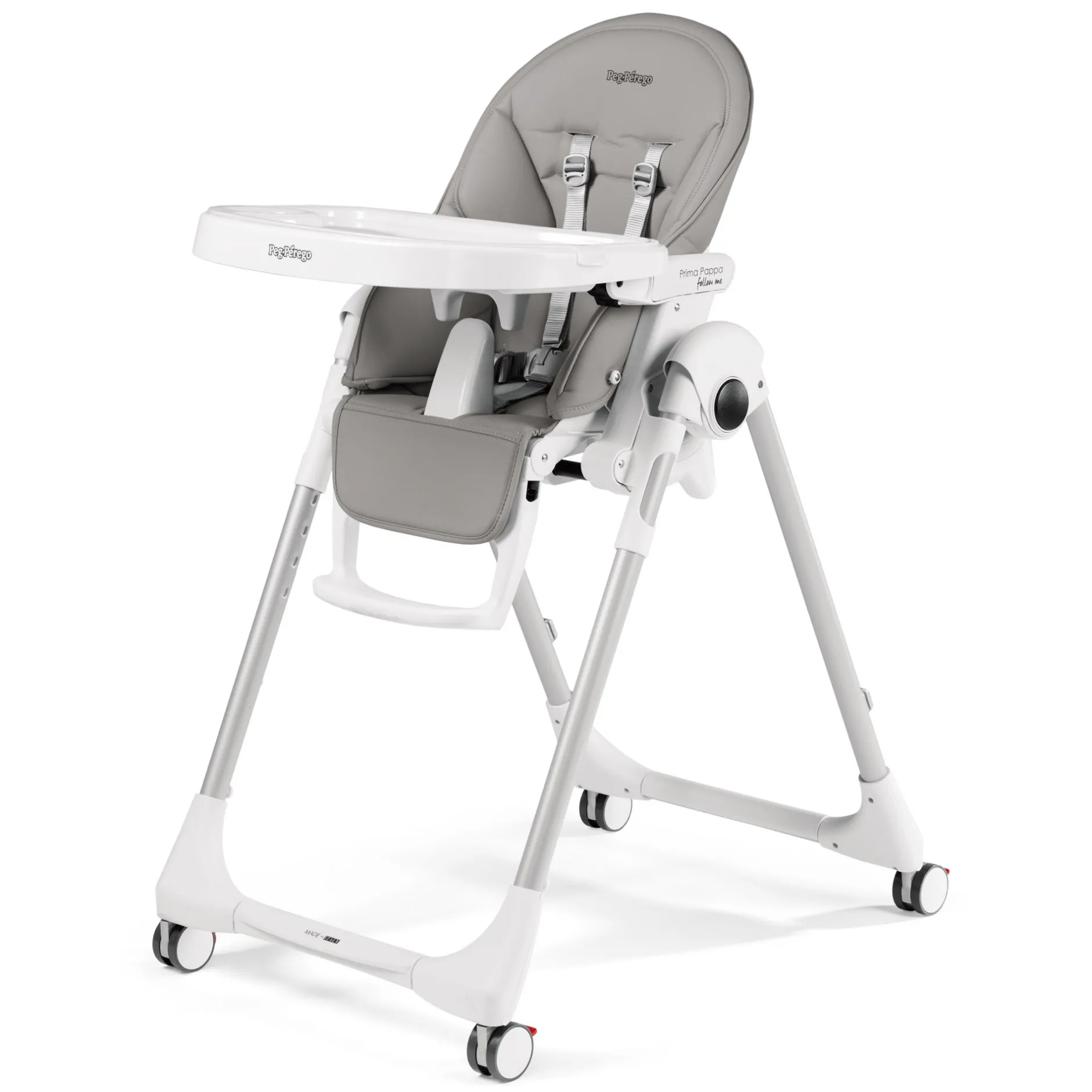 La petite chaise haute qui fait les choses en grand ! La chaise haute réglable 2 en 1 Prima Pappa Follow Me de Peg Perego est homologuée dès la naissance pour être utilisée comme un transat confortable. Avec ses 4 roues, la chaise haute pour bébé Prima Pappa follow me, vous suit partout.