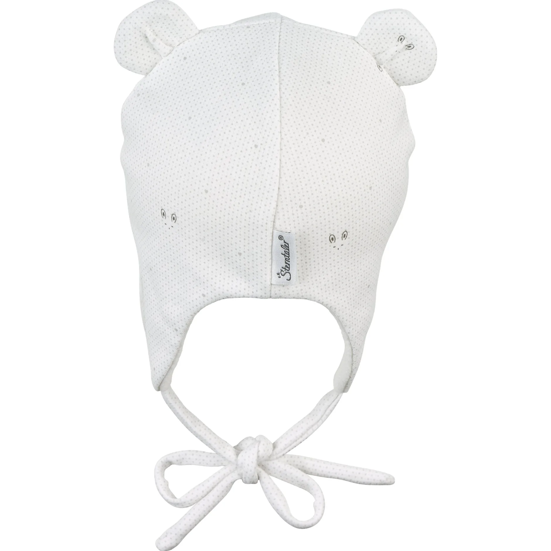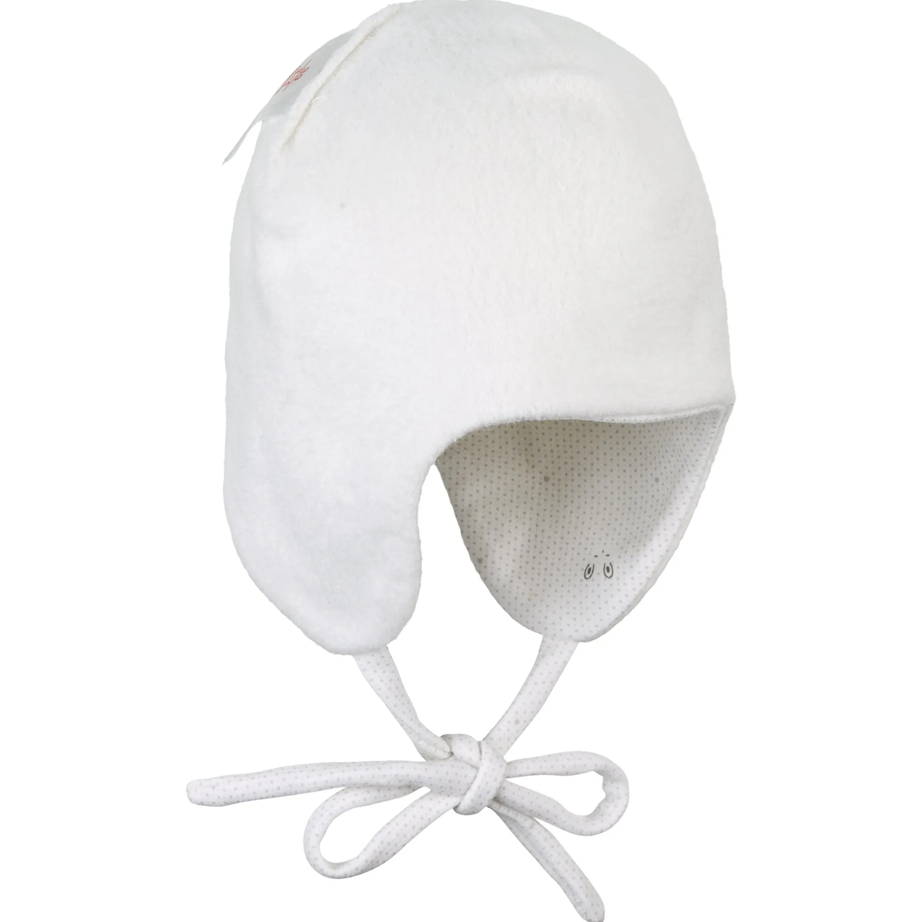 Bonnet esprit péruvien en jersey imprimé petits lapins, avec oreilles et liens à nouer, doublé de polaire de coton