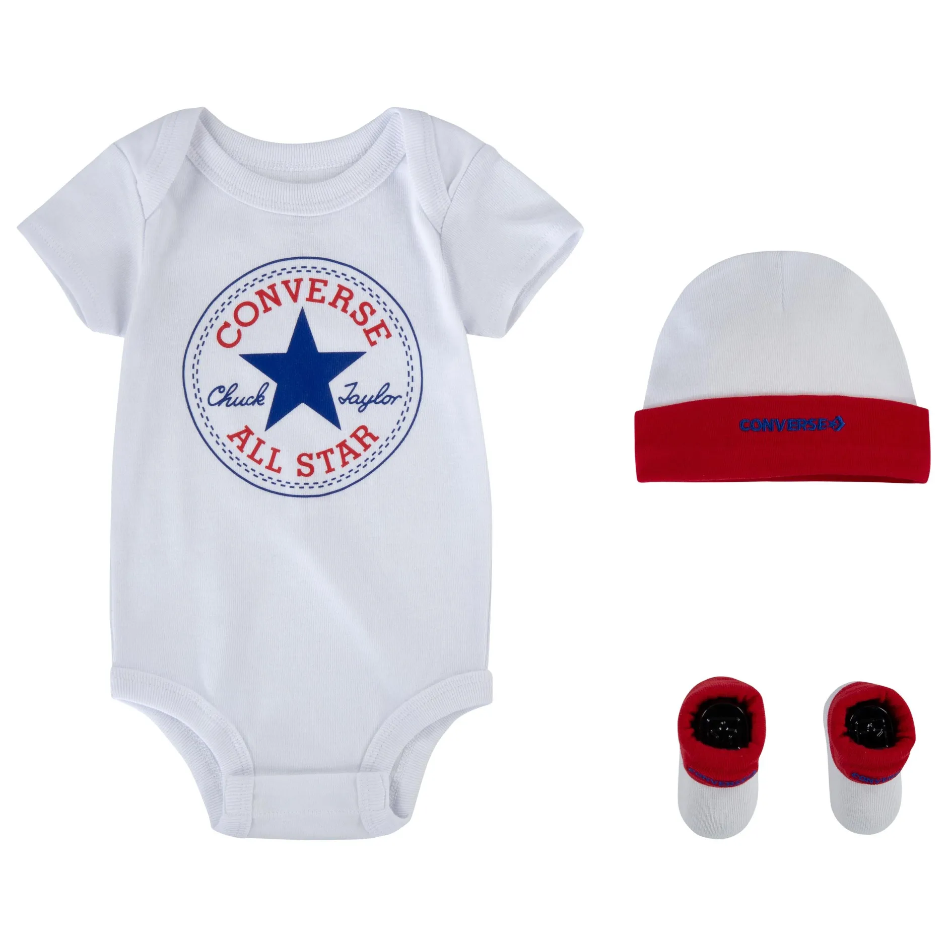 Craquez pour ce coffret Converse, parfait à offrir ! Il est composé d’un bodie avec le logo de la marque, d’un bonnet et d’une paire de chaussons.