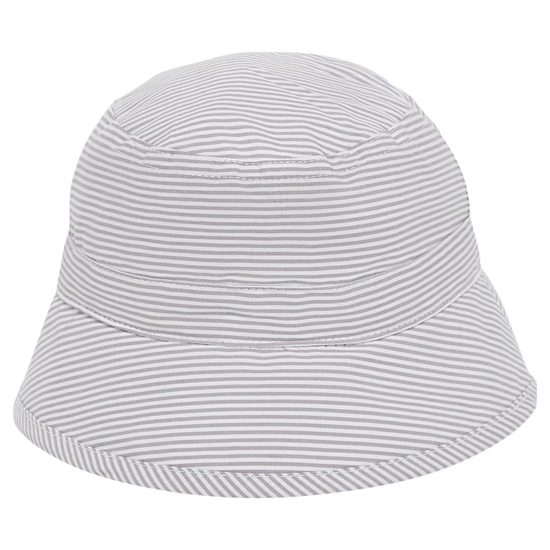Bob Marèse en voile en rayures gris anthracite/écru. Entièrement doublé de voile blanc pour plus de confort et pour des finitions parfaites. Petite patte réglable par pressions pour fermeture pour s’adapter à tous les périmètres crâniens. La pièce indispensable en été quand bébé ira se promener dehors sous le soleil !