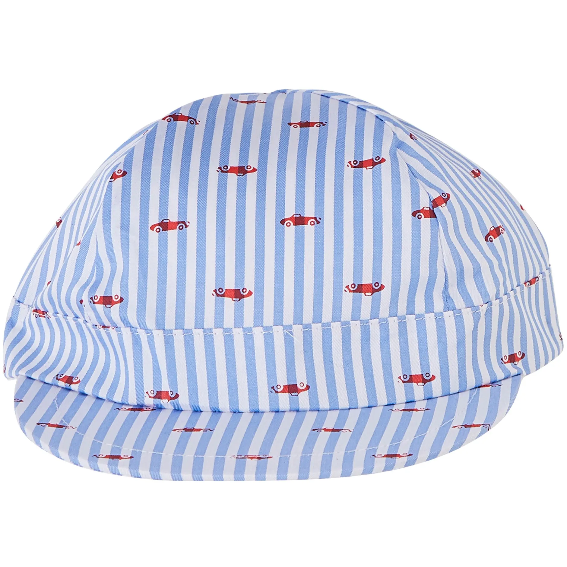 Casquette P’tit Bisou en popeline fantaisie à rayures bleu /blanc en tissé avec ses jolies petites voitures imprimées en rouge. Doublure de voile écru à l’intérieur pour une finition soignée. Visière un peu rigide pour bien protéger des rayons du soleil. Cette casquette s’adapte à tous les périmètres crâniens grâce à son élastique derrière la nuque.