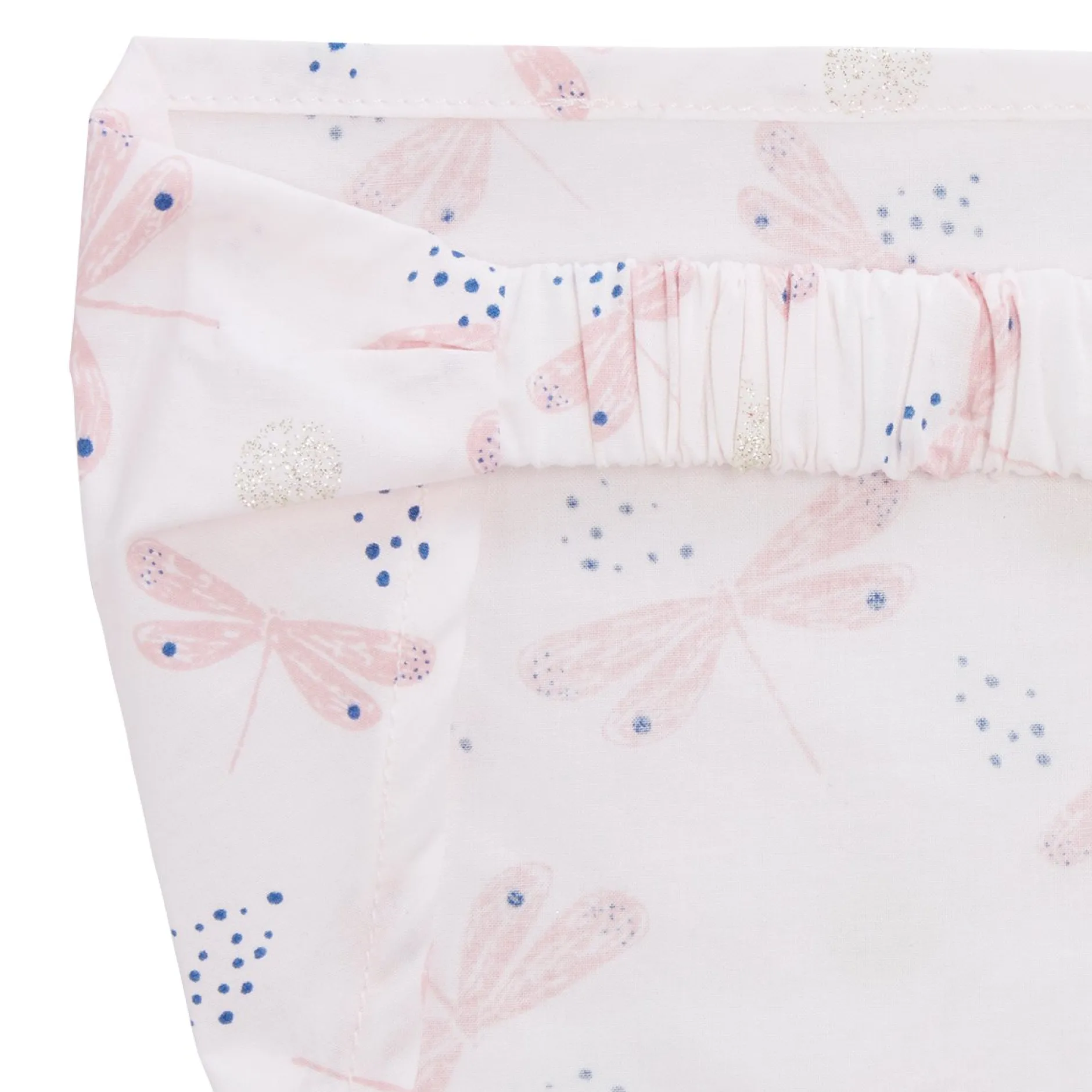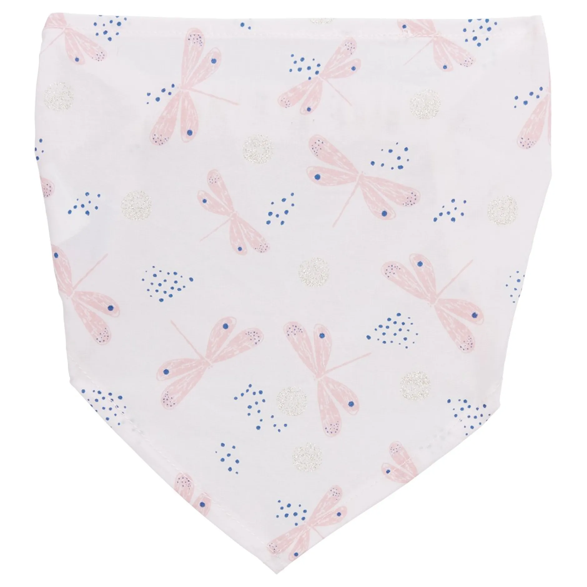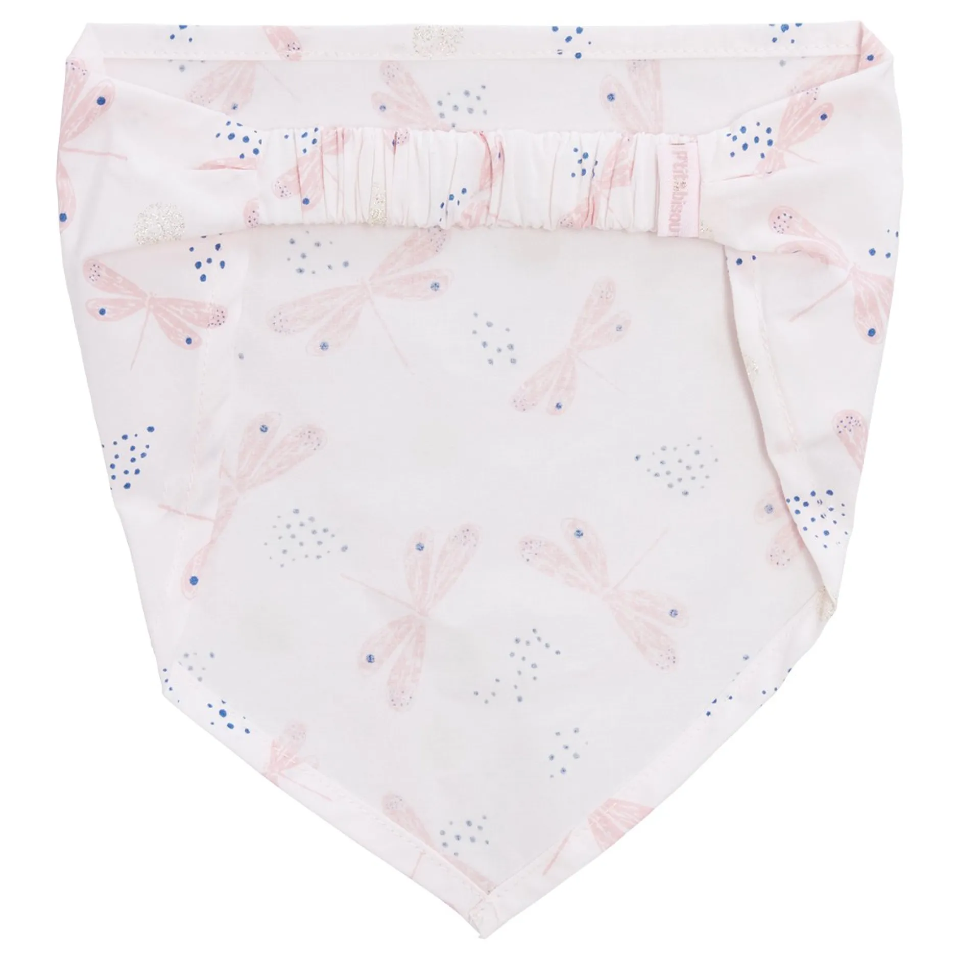 Coiffant forme fichu P’tit Bisou en mousseline gaze mousseline en coloris rose avec des petits nuages imprimés en paillettes dorées.