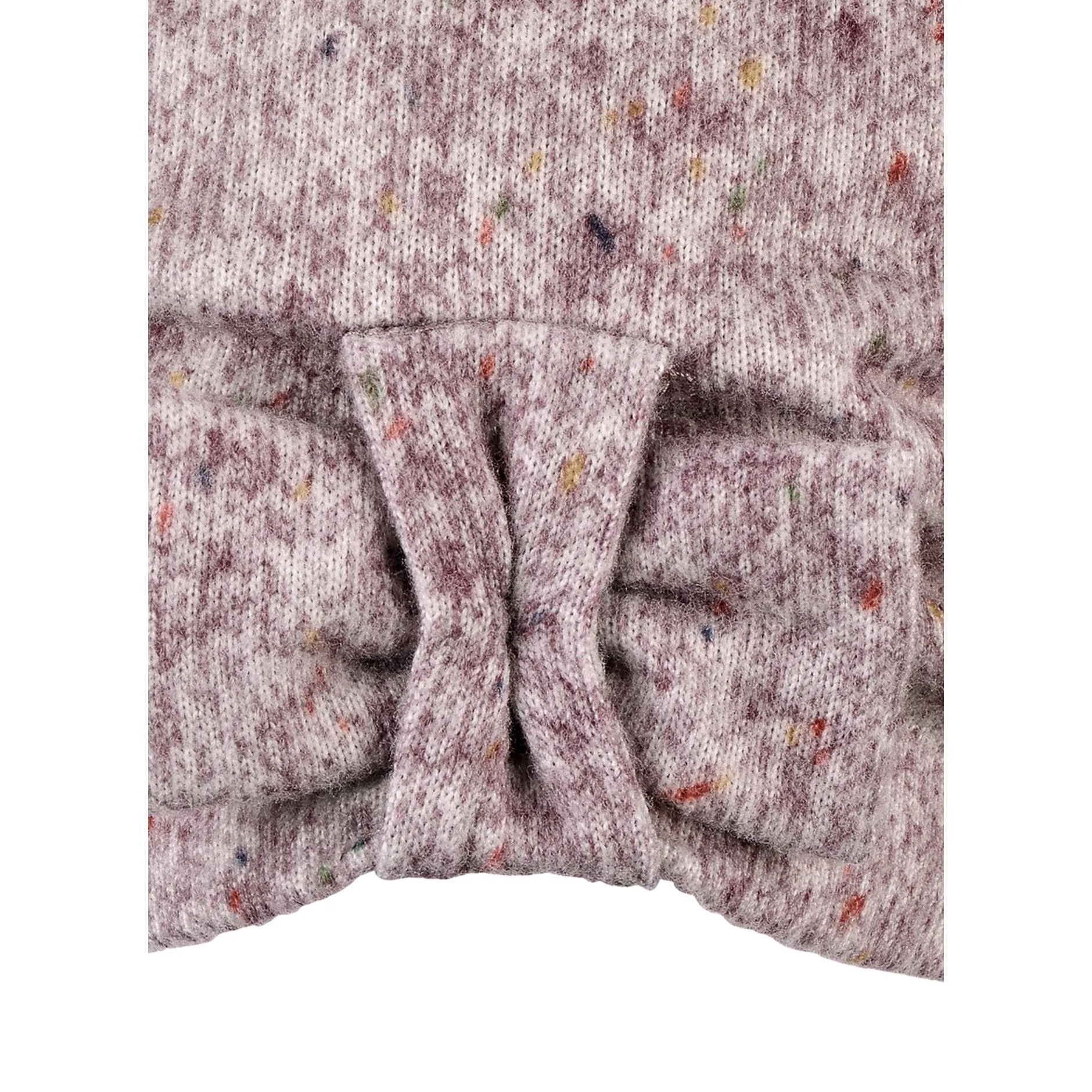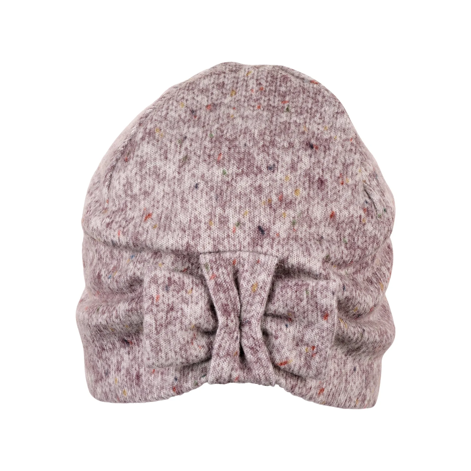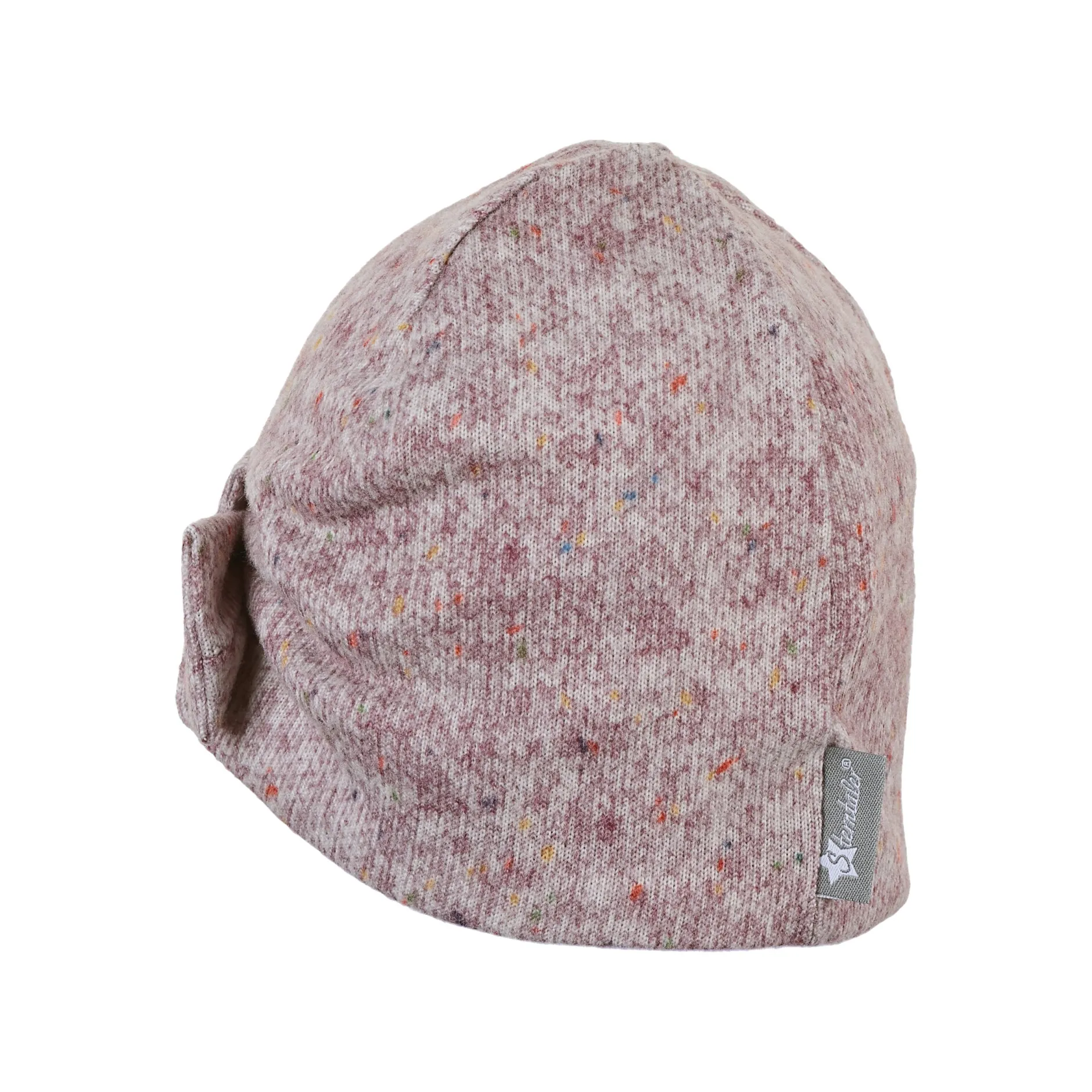 Bonnet avec noeud en tissu mélangé imprimé, aspect tricoté, doublé de coton polaire