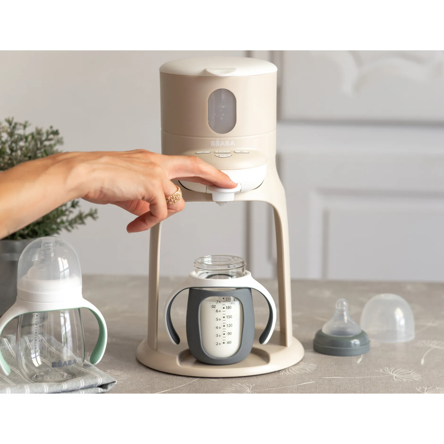 Pratique, une seule main suffit pour un biberon prêt en 30 secondes, sans faire attendre bébé.