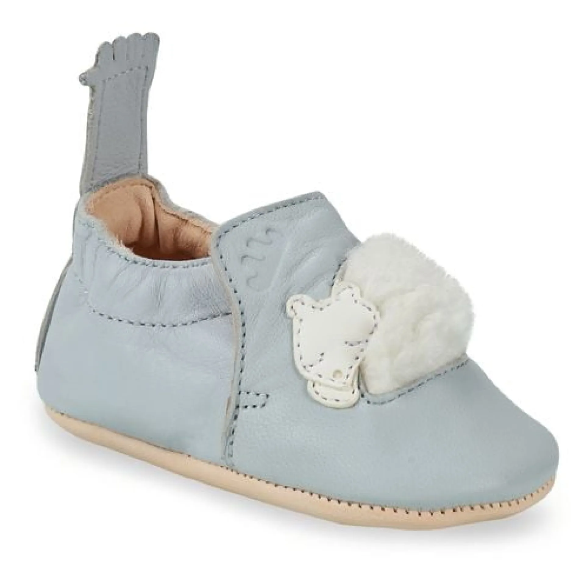 Blumoo, c’est un chausson seconde peau, spécialement conçu par la marque Easy Peasy pour les nouveaux nés et les bébés. La semelle est construite avec deux épaisseurs de cuir de mouton au tannage végétal, sans chrome et sans teinture. La semelle en cuir très souple est idéale pour les apprentissages à quatre-pattes. Ce chausson chaussette est facile à enfiler grâce à la petite main qui sert de chausse-pied.