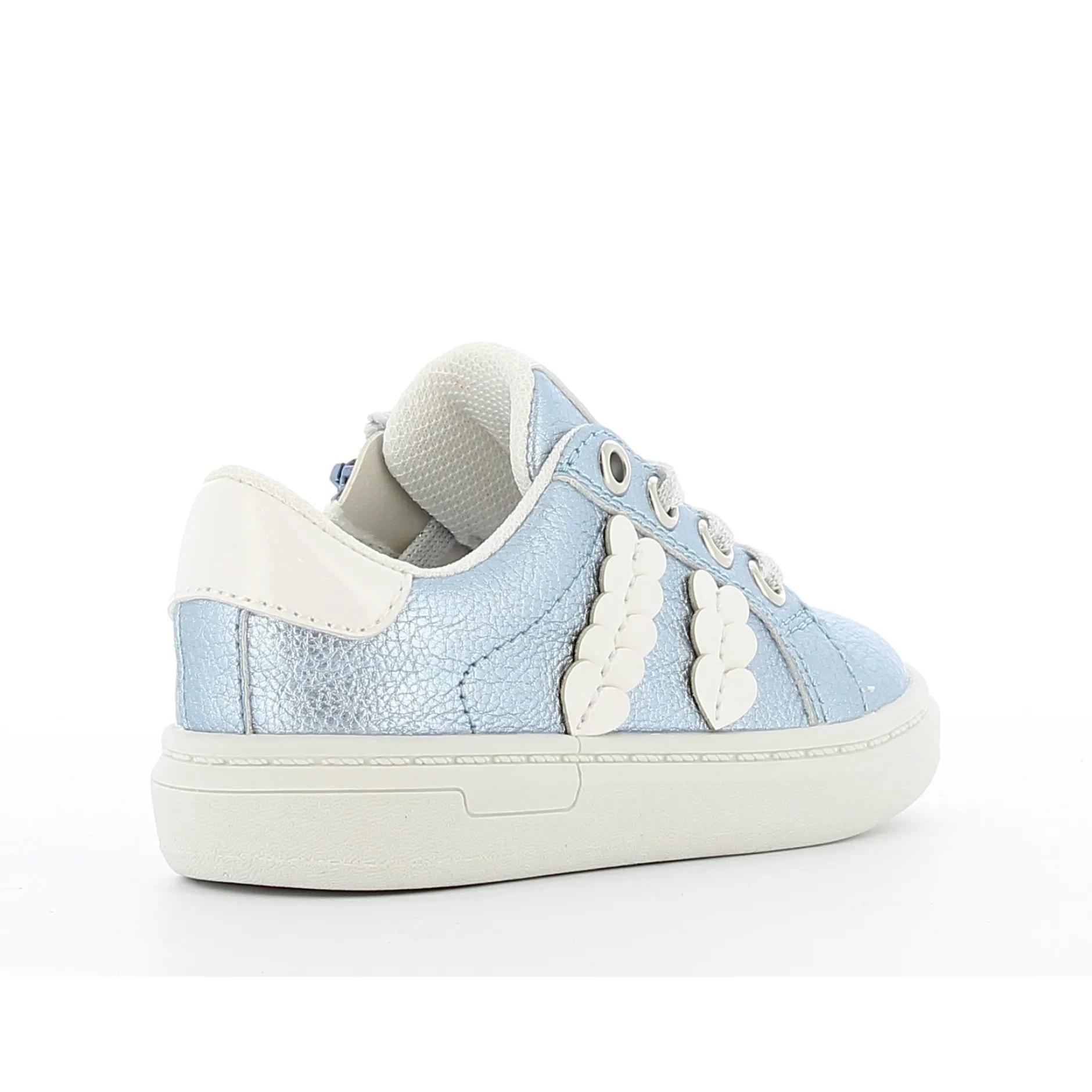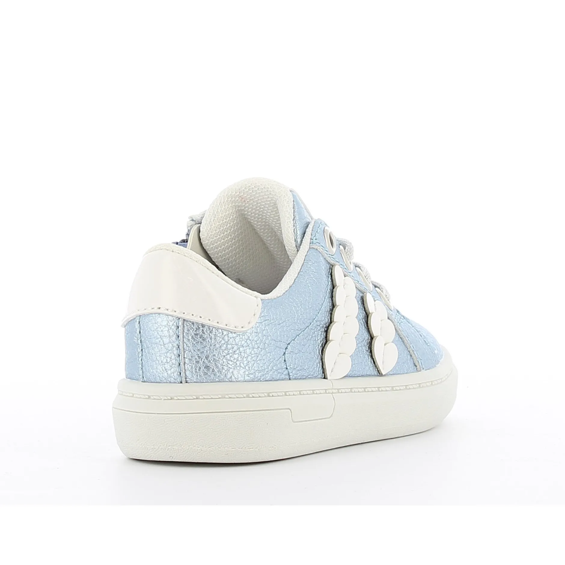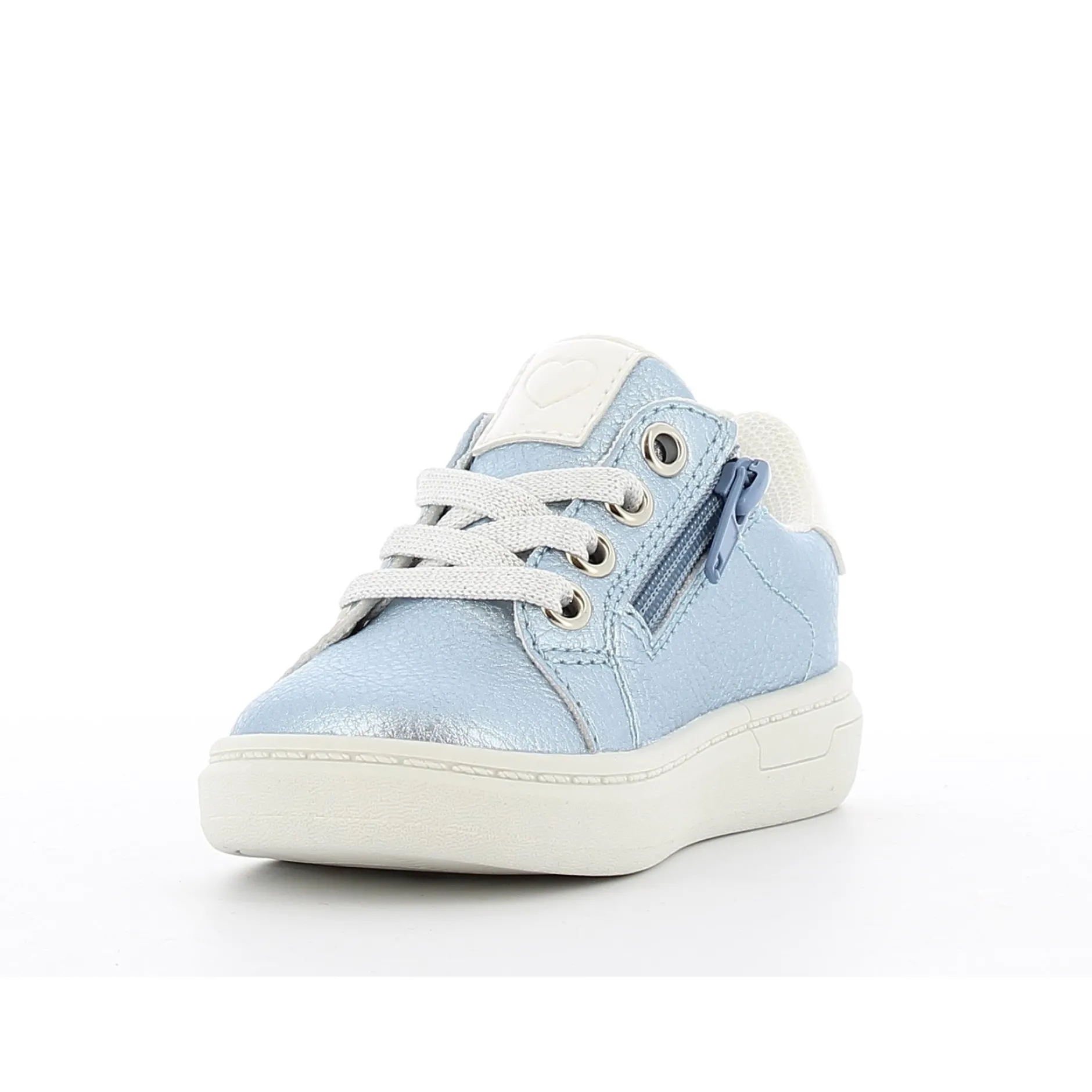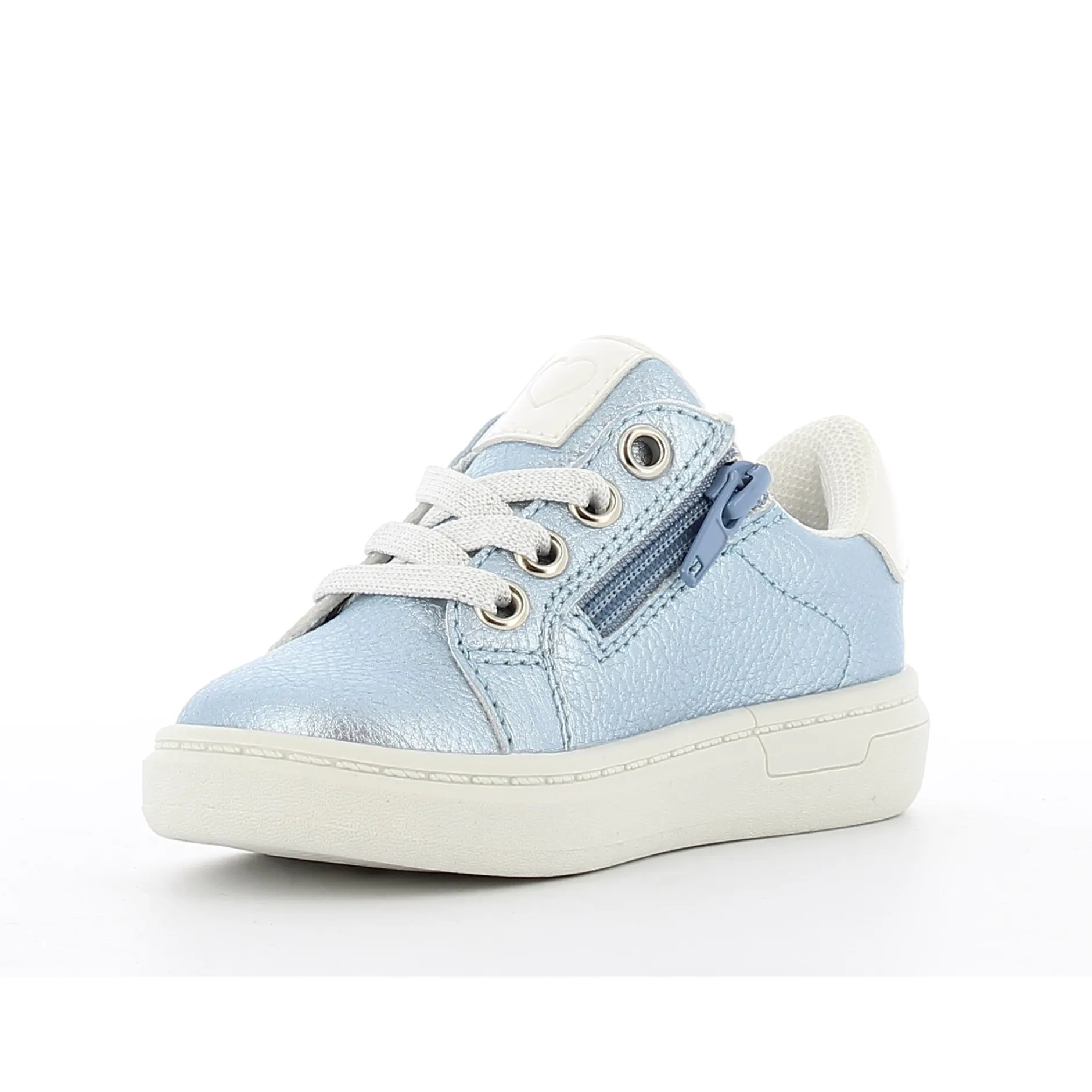 Petite basket bleu ciel pour fille. Les petits cœurs et détails brillants la rende très attrayante. Ces baskets bleu clair à la mode feront fondre les cœurs des petites filles ! Les jolis patchs cœurs brillants et les lacets scintillants les rendent très stylées. Facile à mettre ou à enlever grâce à la fermeture éclair intérieure fonctionnelle.