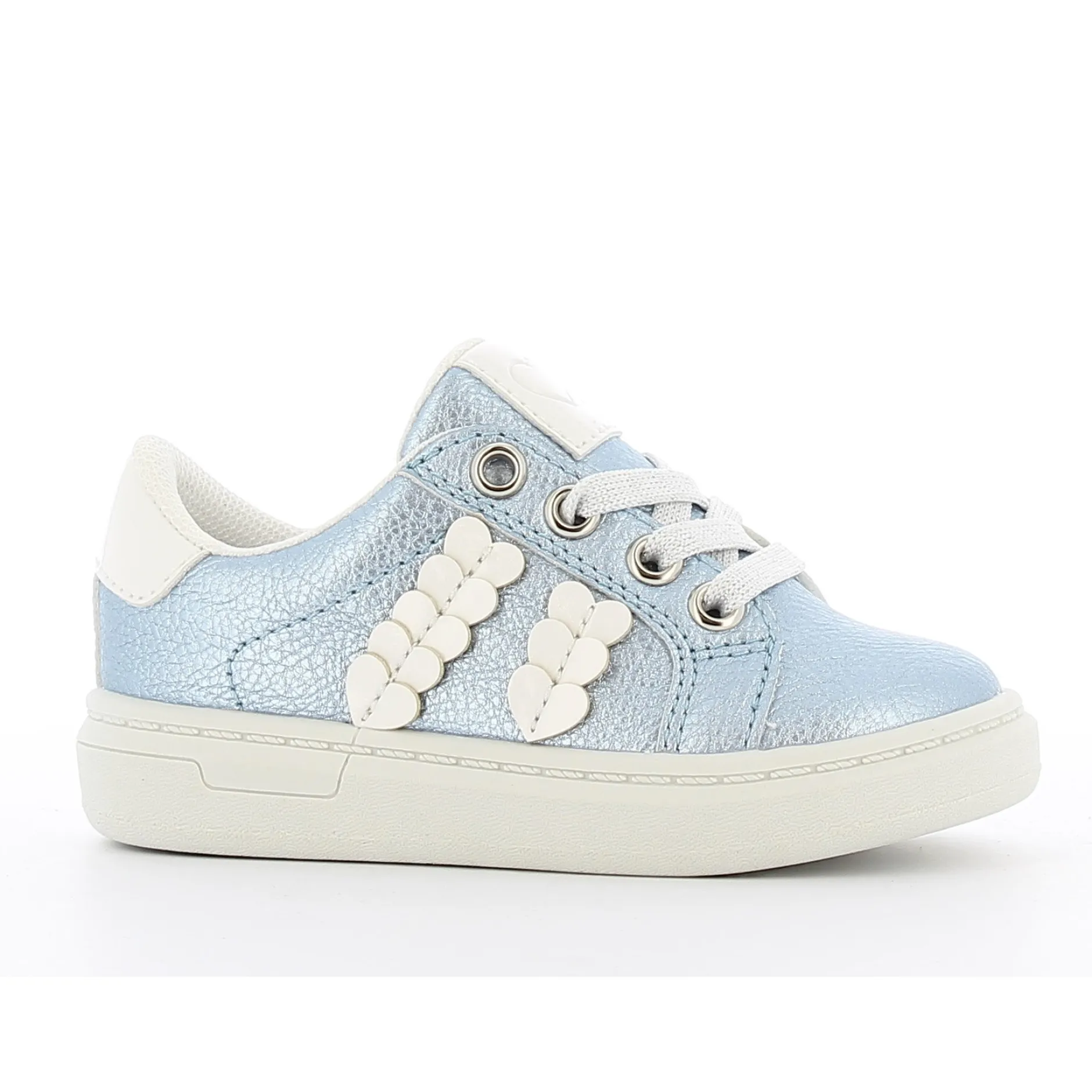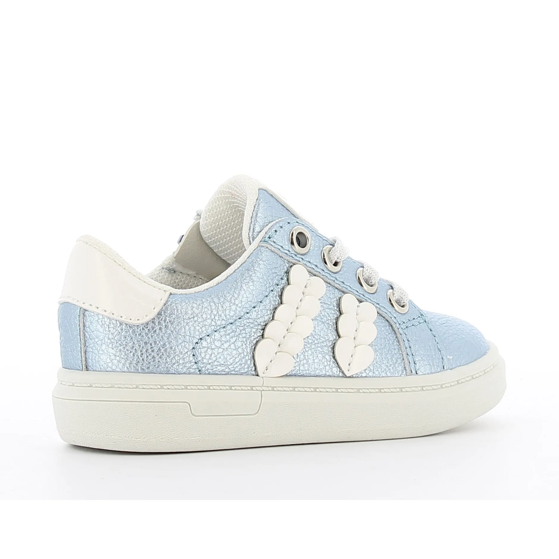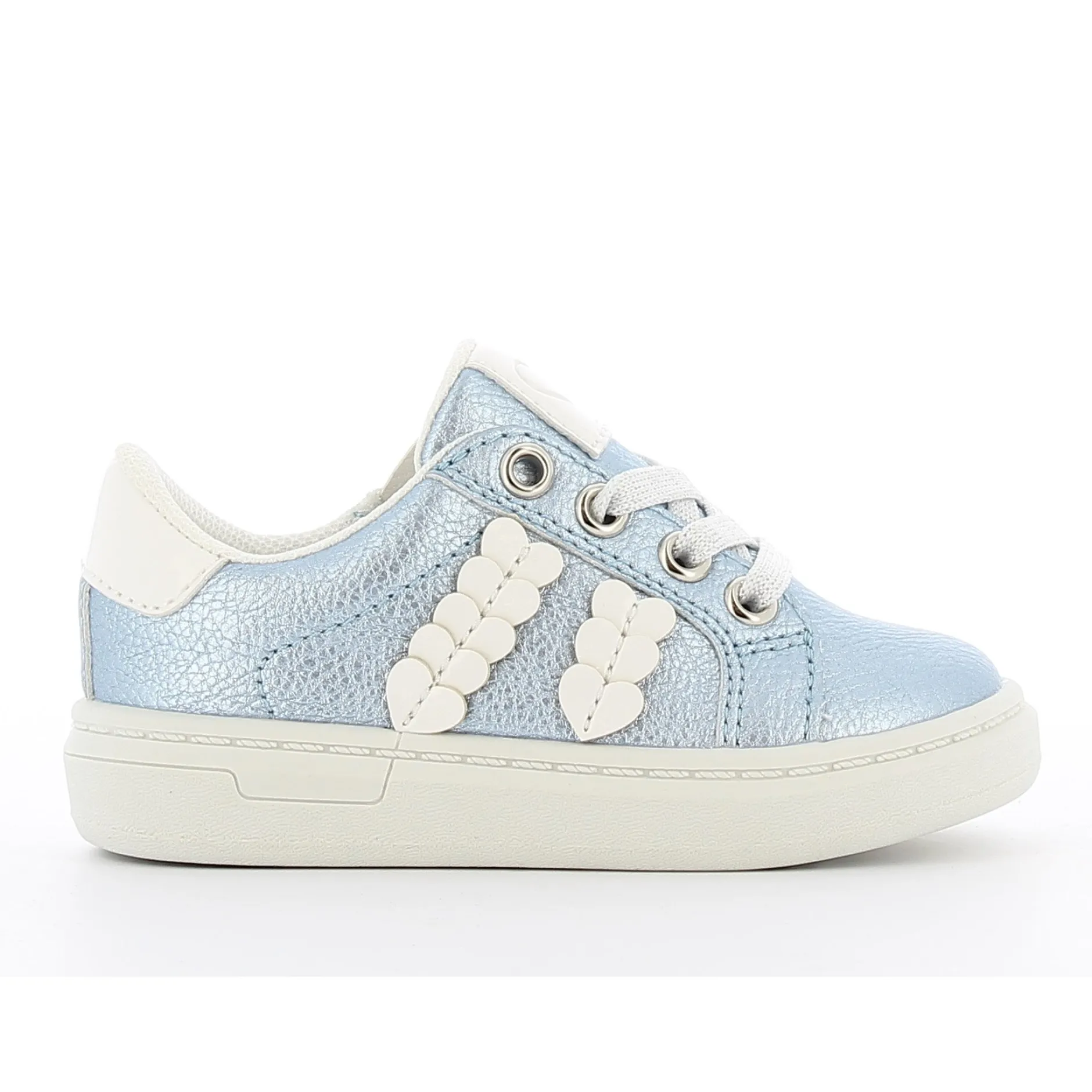 Petite basket bleu ciel pour fille. Les petits cœurs et détails brillants la rende très attrayante. Ces baskets bleu clair à la mode feront fondre les cœurs des petites filles ! Les jolis patchs cœurs brillants et les lacets scintillants les rendent très stylées. Facile à mettre ou à enlever grâce à la fermeture éclair intérieure fonctionnelle.