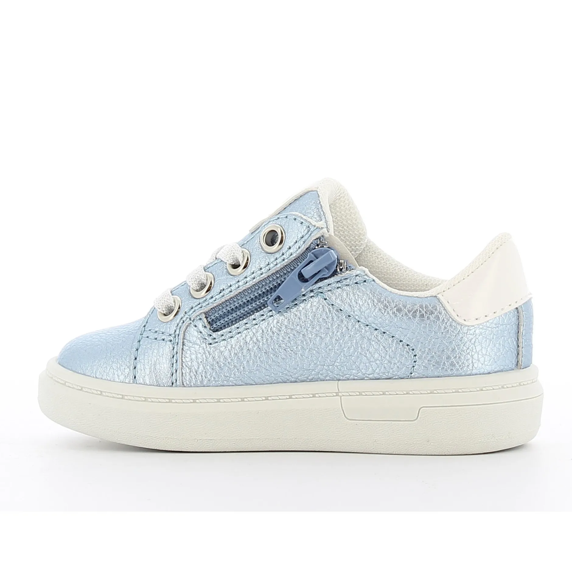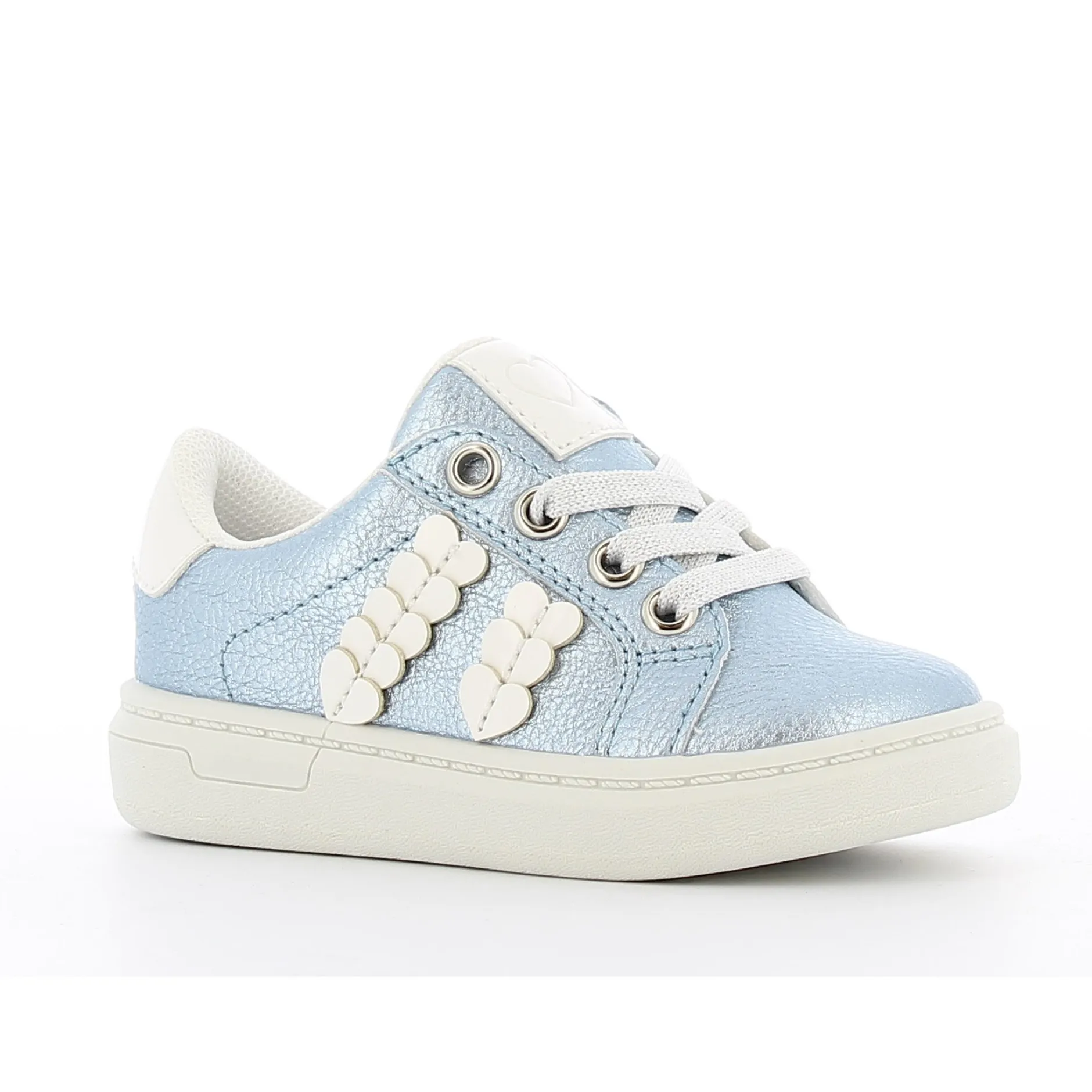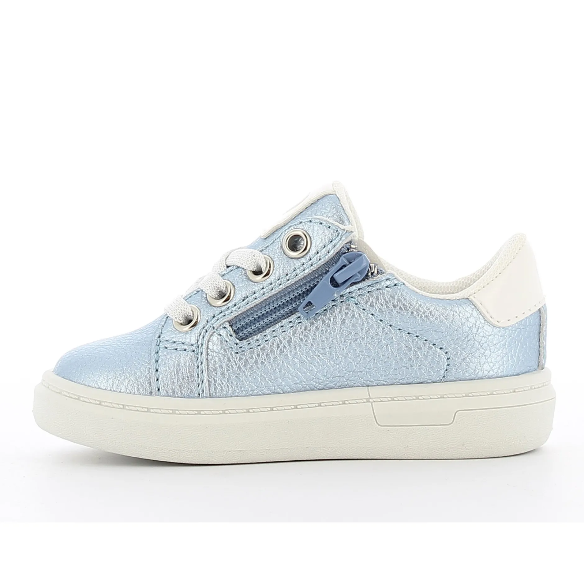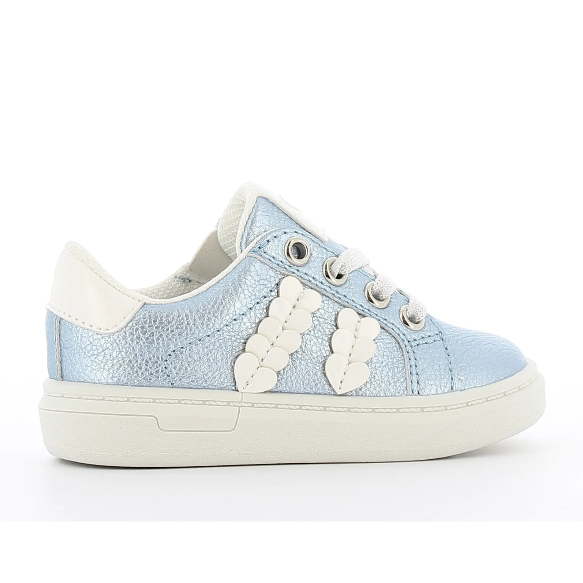 Petite basket bleu ciel pour fille. Les petits cœurs et détails brillants la rende très attrayante. Ces baskets bleu clair à la mode feront fondre les cœurs des petites filles ! Les jolis patchs cœurs brillants et les lacets scintillants les rendent très stylées. Facile à mettre ou à enlever grâce à la fermeture éclair intérieure fonctionnelle.