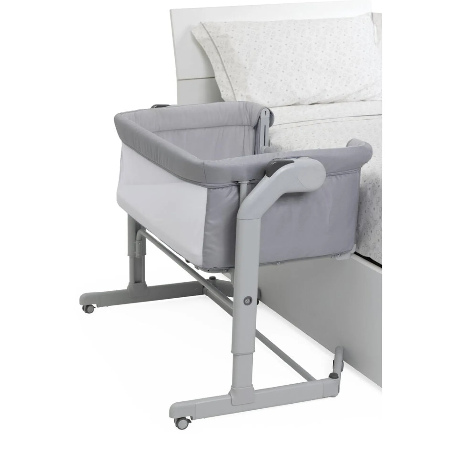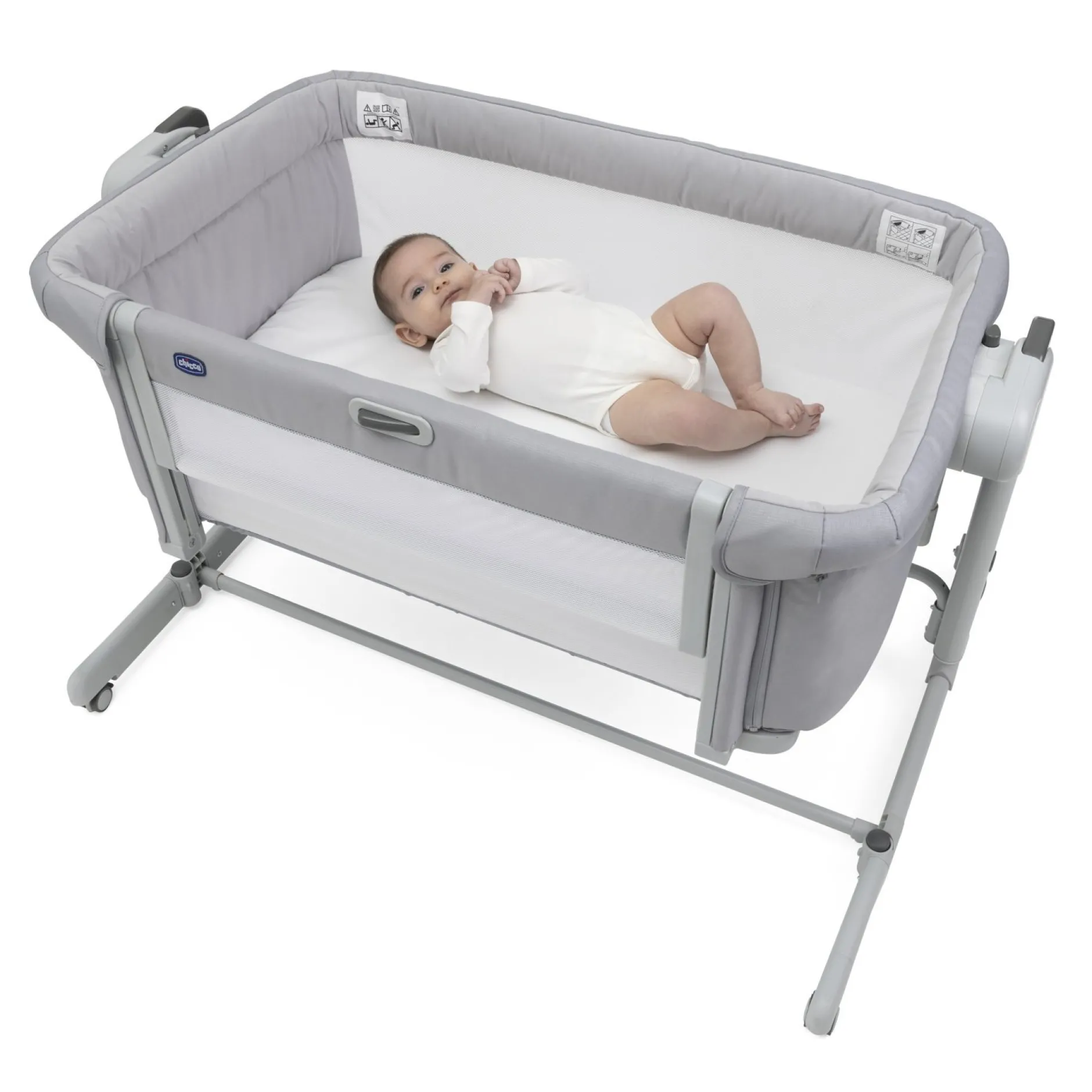 Le lit Chicco Next2Me Magic a une forme arrondie et enrobante et est doté de 2 côtés en filet pour une aération optimale et pour maintenir le contact visuel entre les parents et l’enfant. Il est équipé de 4 roues avec freins pour stabiliser le berceau et pour éviter les déplacements involontaires.