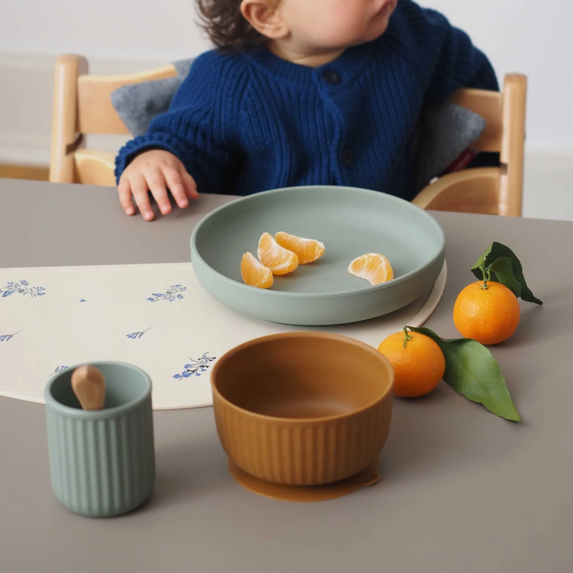 Le bol et l’assiette sont tous deux équipés d’une ventouse pour être fixés à la tablette de la chaise haute ou directement à la table, ce qui évitera de nombreux petits accidents.