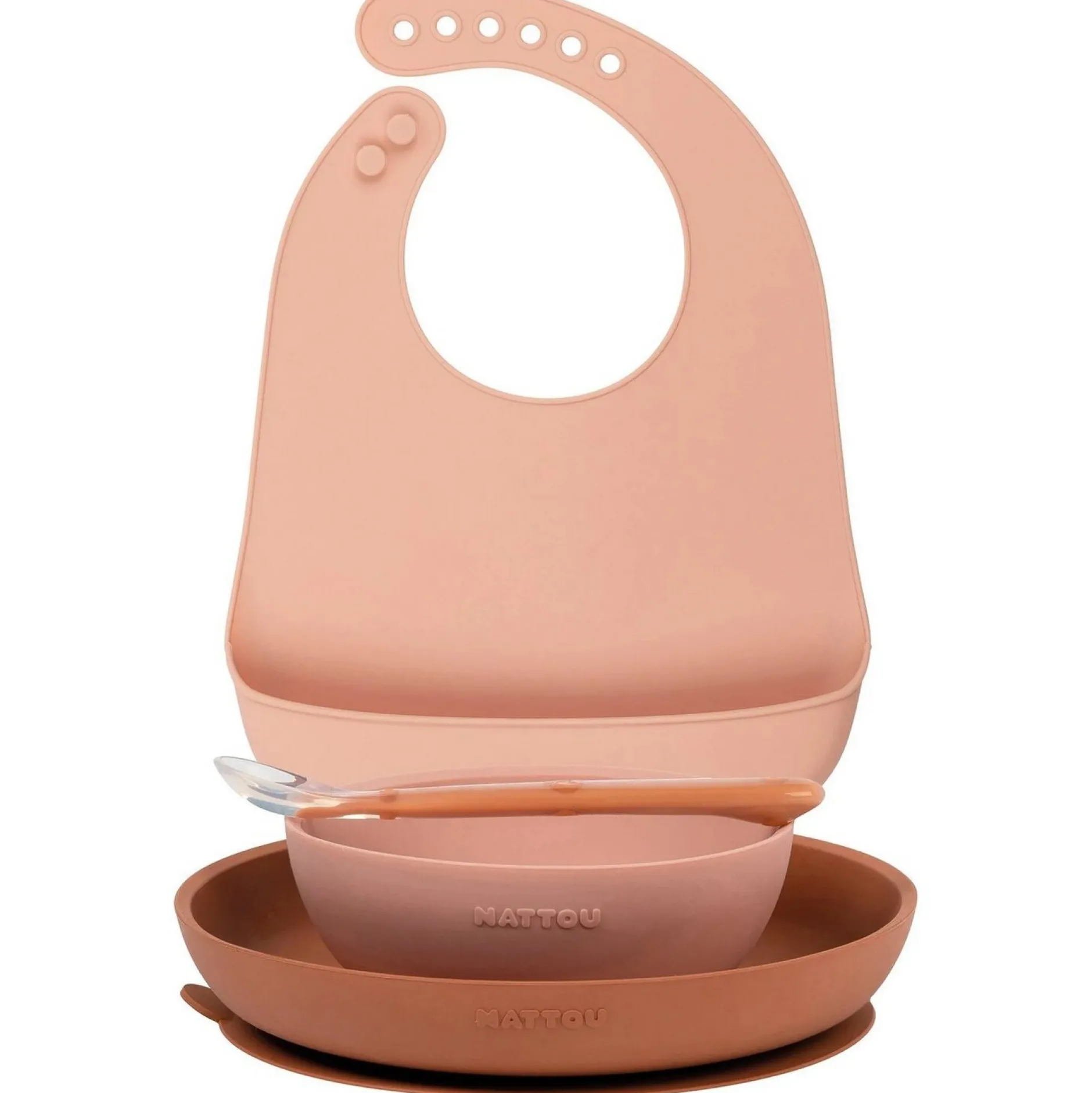 - Set repas pour bébés et enfants avec assiette, bol, cuillère et bavoir en silicone souple, Idéal pour les repas ou pour manger de manière autonome