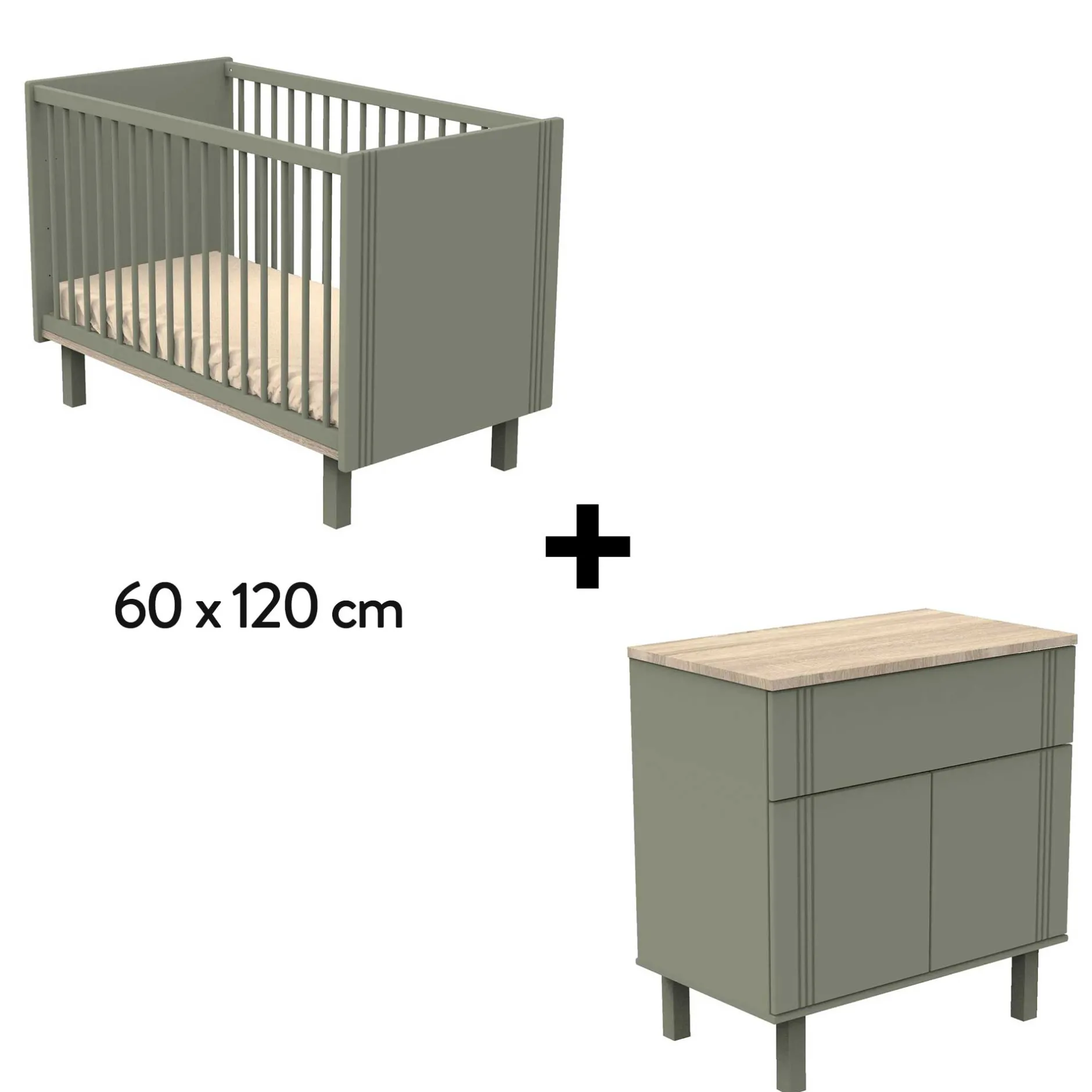 Ce pack contient le lit 60 x 120 cm et une commode de la collection Eléonore de la marque Sauthon.