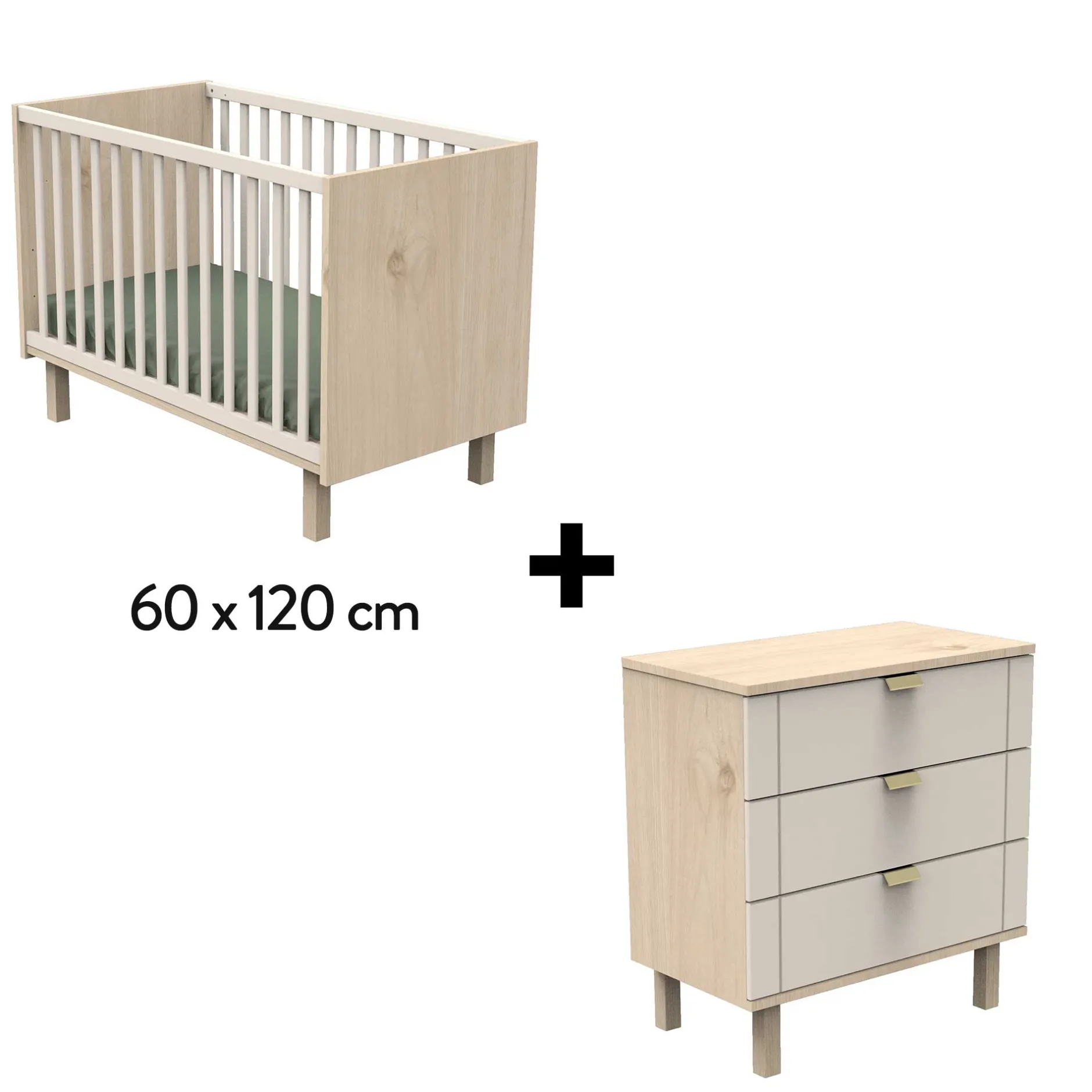Ce pack contient le lit 60 x 120 cm (coloris au choix) et une commode (coloris au choix) de la collection Solène de la marque Sauthon.
