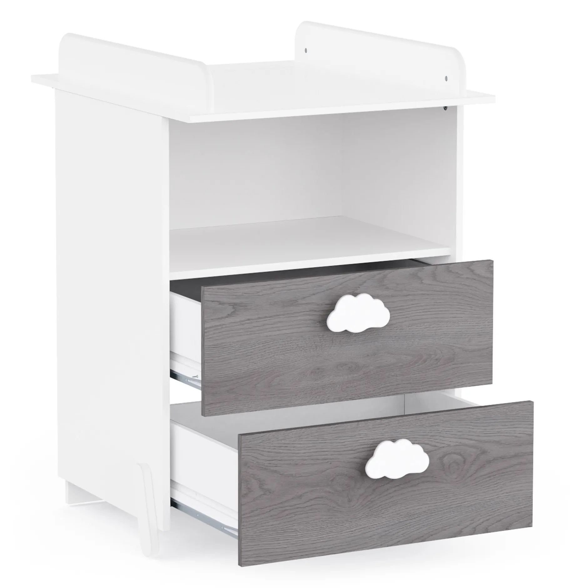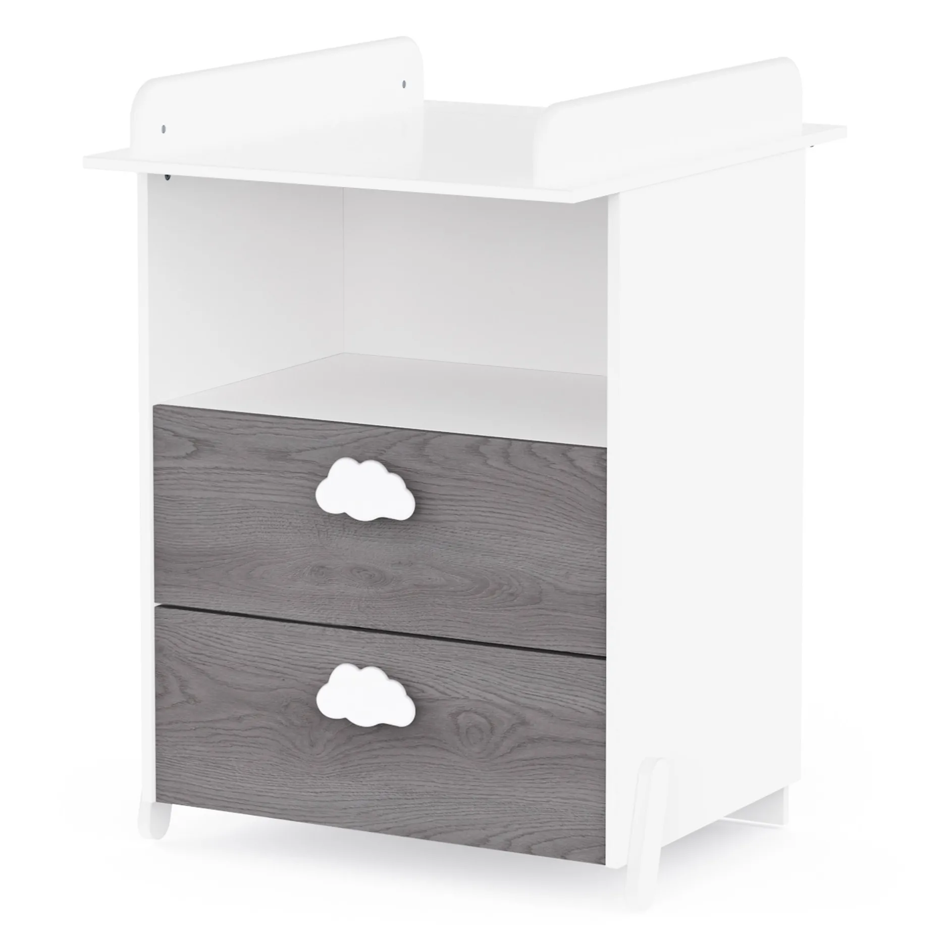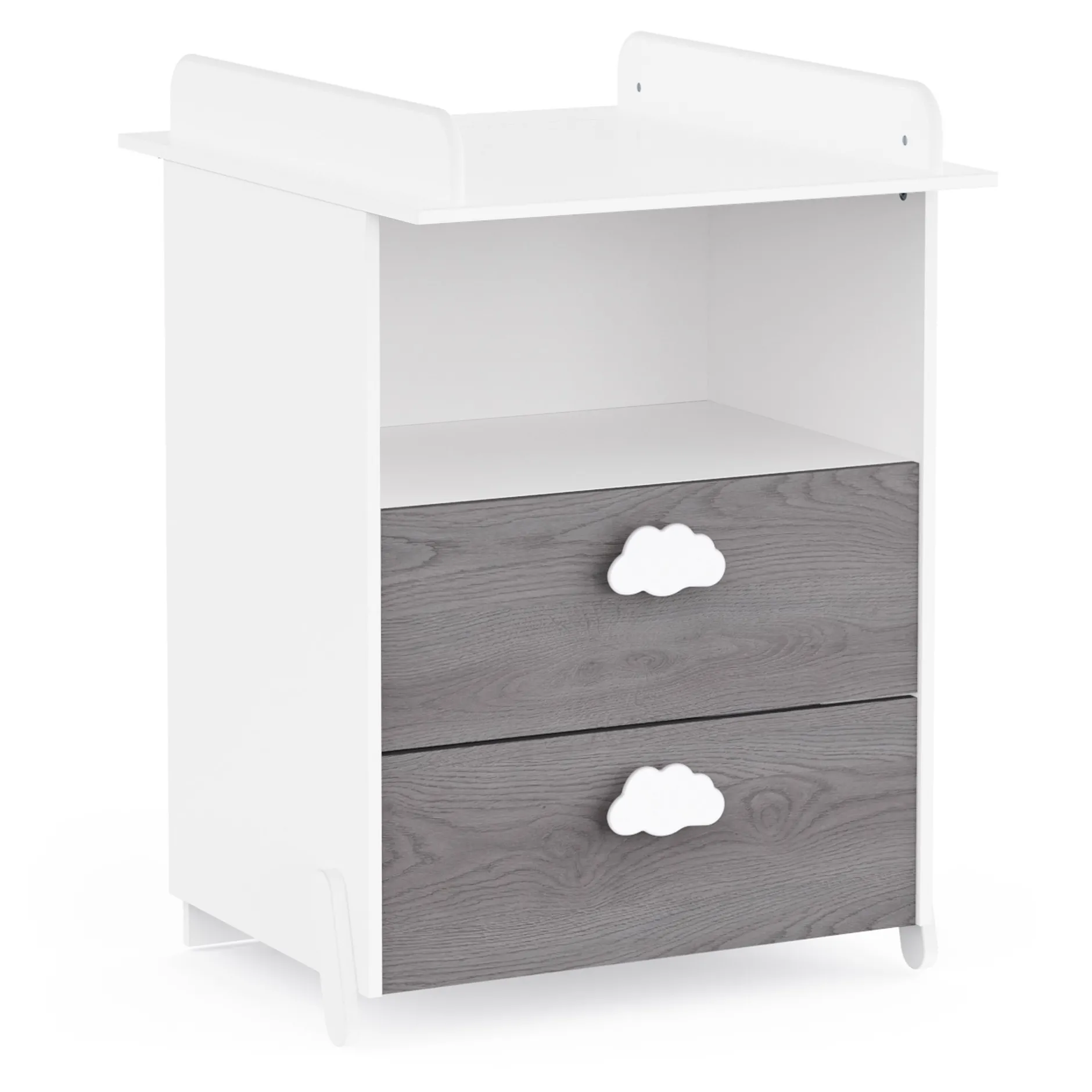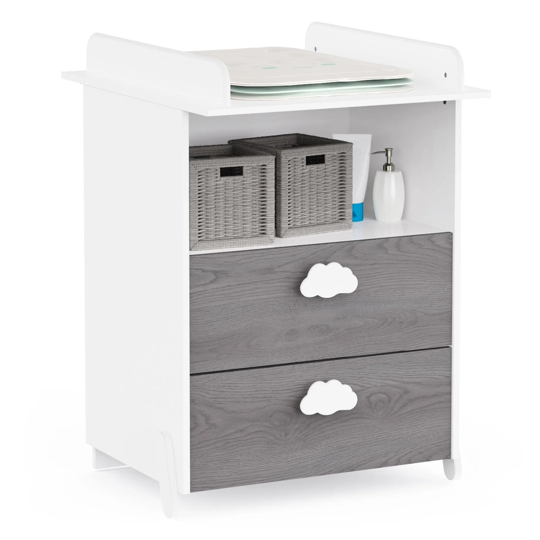 Découvrez la commode à langer ALDINA avec 2 tiroirs et 1 niche.