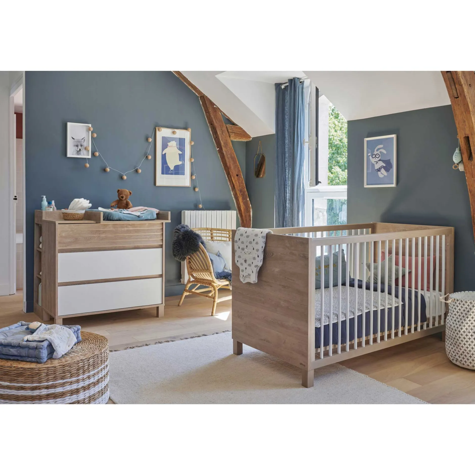 De jolis détails effet « persienne » sur un tiroir vient signer la collection. Elle est dotée de trois tiroirs pour y ranger les premiers vêtements de votre enfant. Ses beaux volumes de rangement permettront de la conserver un long moment dans sa chambre.