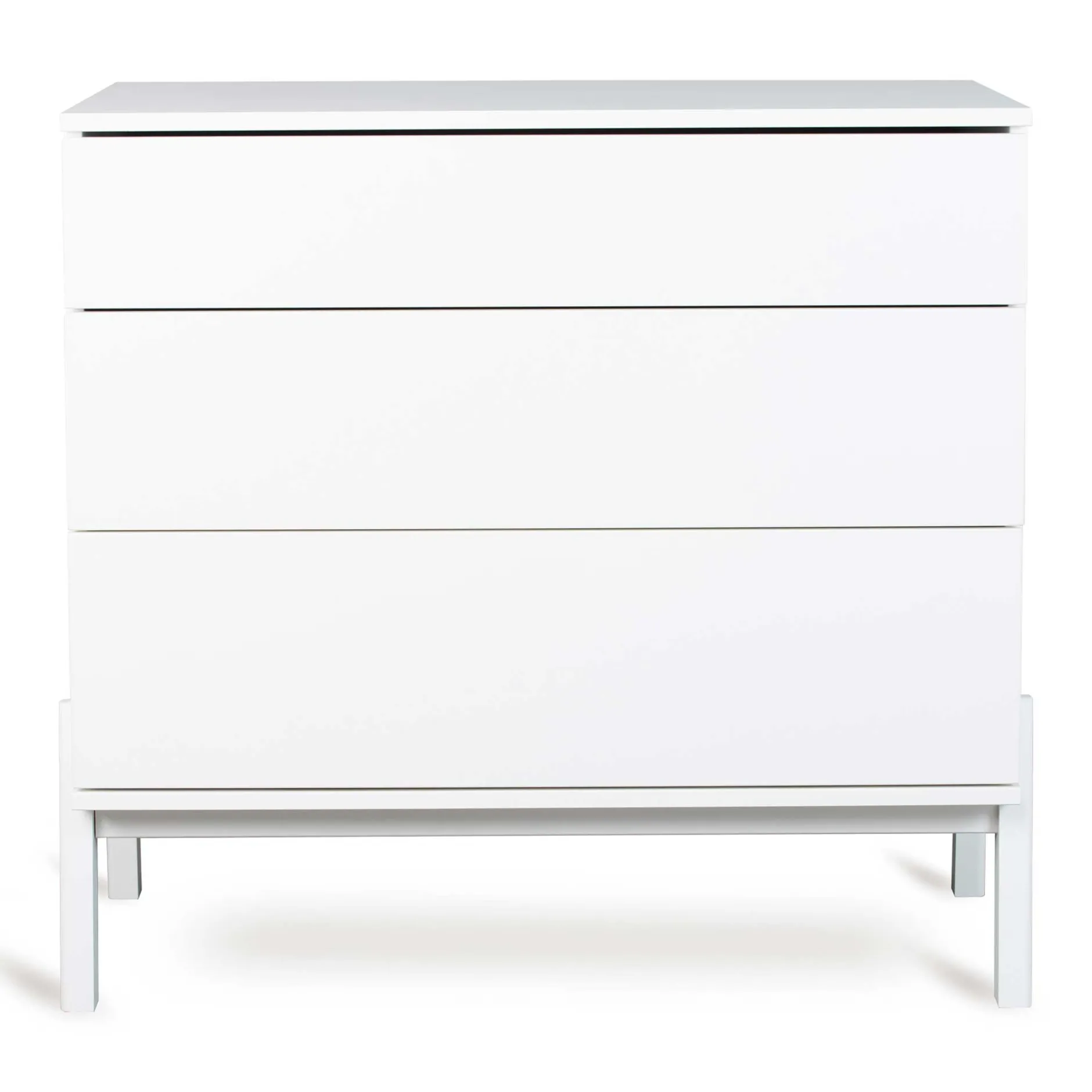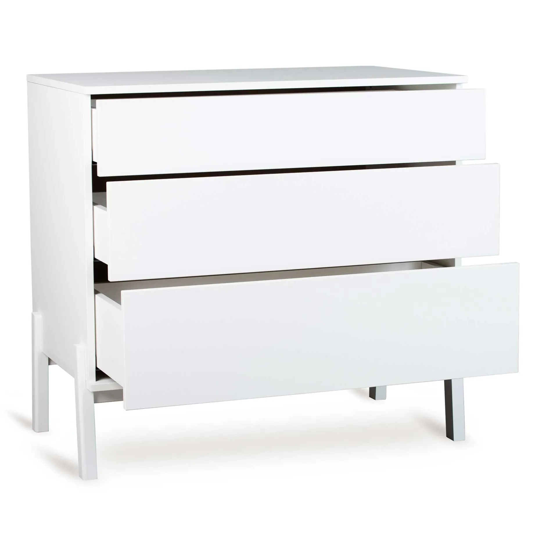 Les trois tiroirs sans poignée s’ouvrent en douceur grâce au système push, ce qui est non seulement fonctionnel, mais aussi esthétiquement attrayant. Et n’oublions pas, les tiroirs s’ouvrent en silence, ce qui est toujours apprécié dans la chambre de bébé.