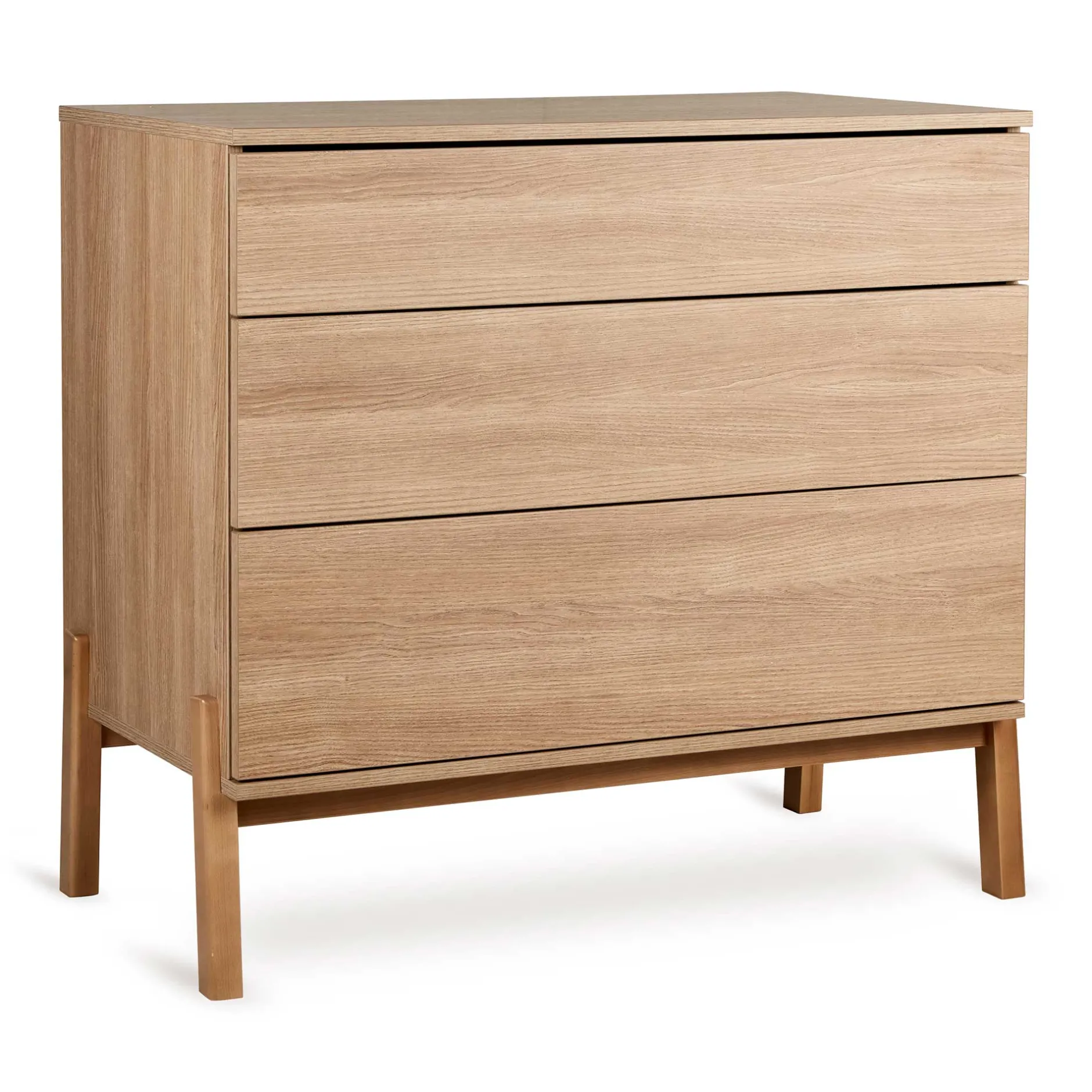 Les trois tiroirs sans poignée s’ouvrent en douceur grâce au système push, ce qui est non seulement fonctionnel, mais aussi esthétiquement attrayant. Et n’oublions pas, les tiroirs s’ouvrent en silence, ce qui est toujours apprécié dans la chambre de bébé.