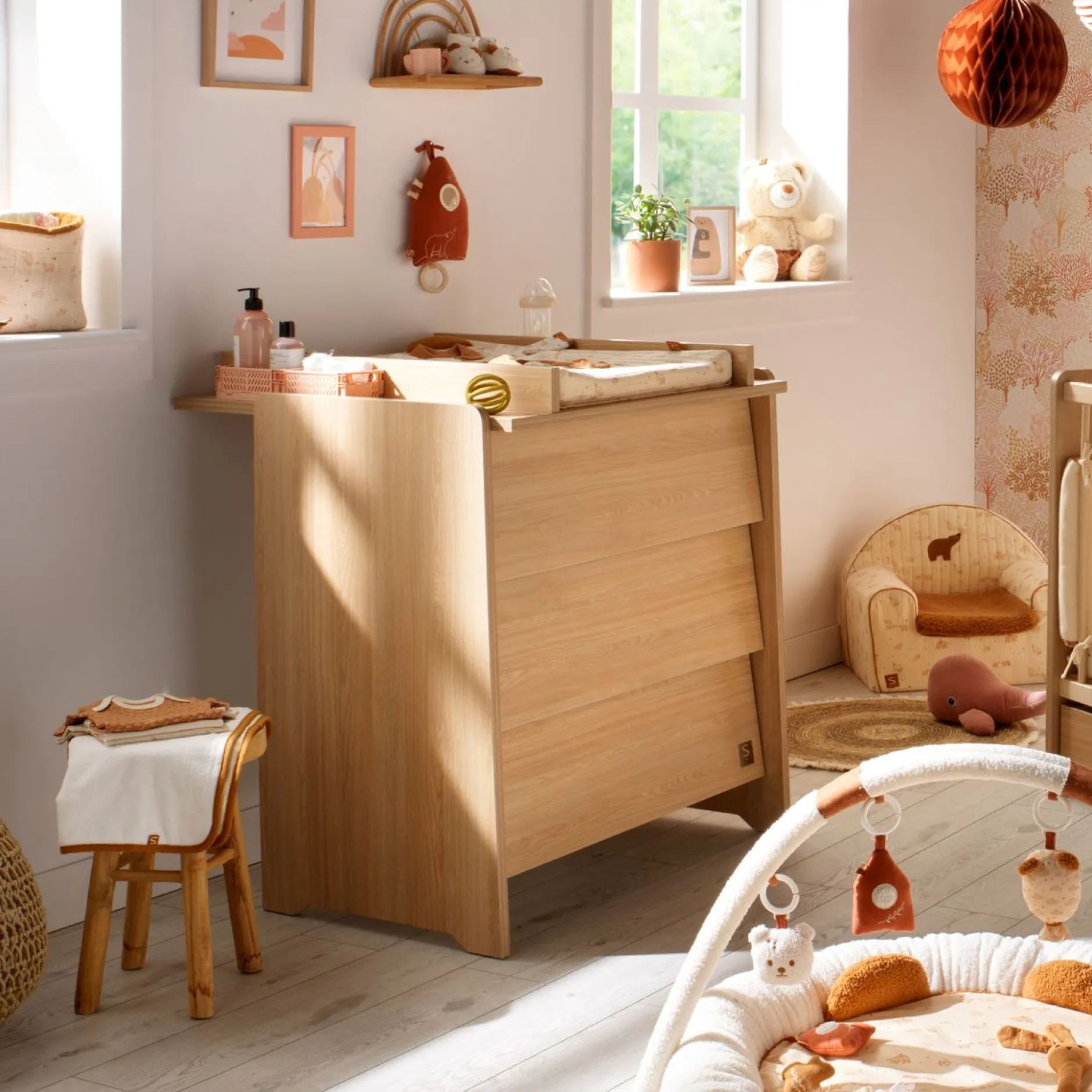 Pratique, un plan à langer de la même collection pourra être fixé sur le dessus de la commode (non inclus).