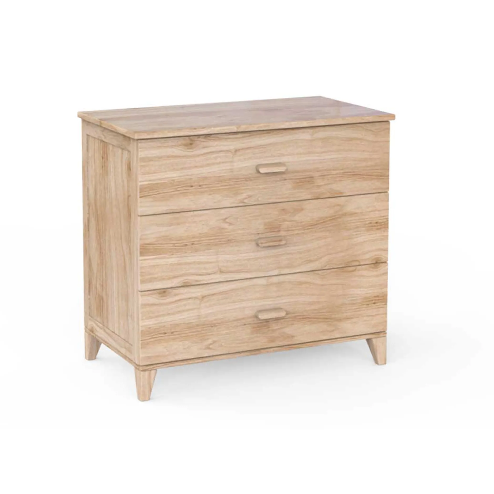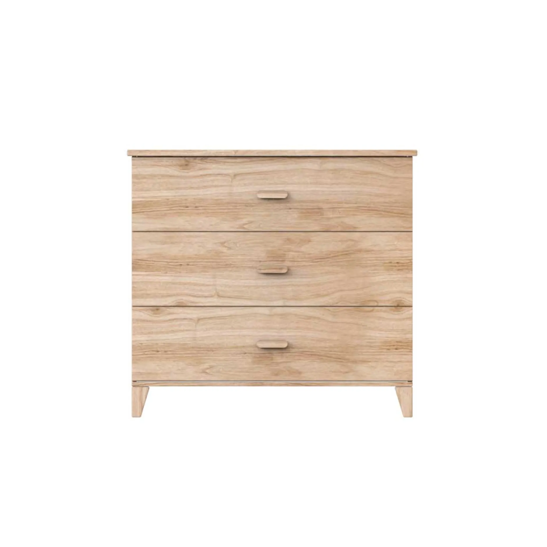 La commode Naïa Bois et faite pour les amoureux de la nature. Fabriquée avec du véritable bois, pour les parties bois massif et de fines feuilles de bois pour le placage des panneaux, elle sent bon la nature et le bois, sans imitation.