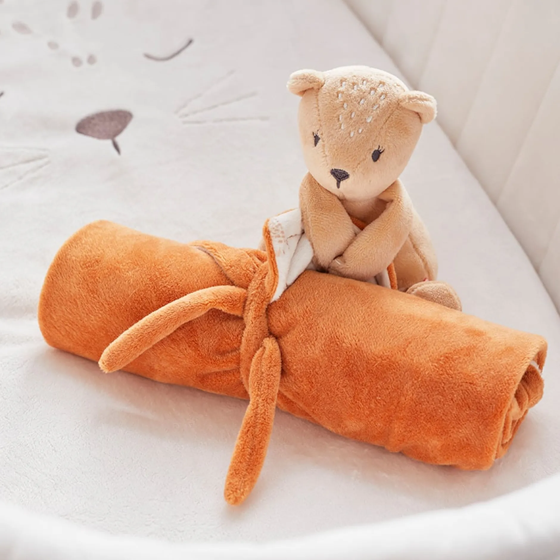 Ma première couverture, le doudou en Veloudoux enveloppant et douillet par sa grande couverture apporte douceur et réconfort à votre petit amour. Epaisse et ultra douce, elle accompagnera bébé de ses plus douces nuits, à ses plus gros chagrins. Dotée d’un petit lien, vous pouvez facilement la rouler et la glisser dans le sac à langer lors de vos déplacements. Idéal comme cadeau de naissance, vous pouvez maintenant également broder votre première couverture préférée au nom de votre petit bout de chou.